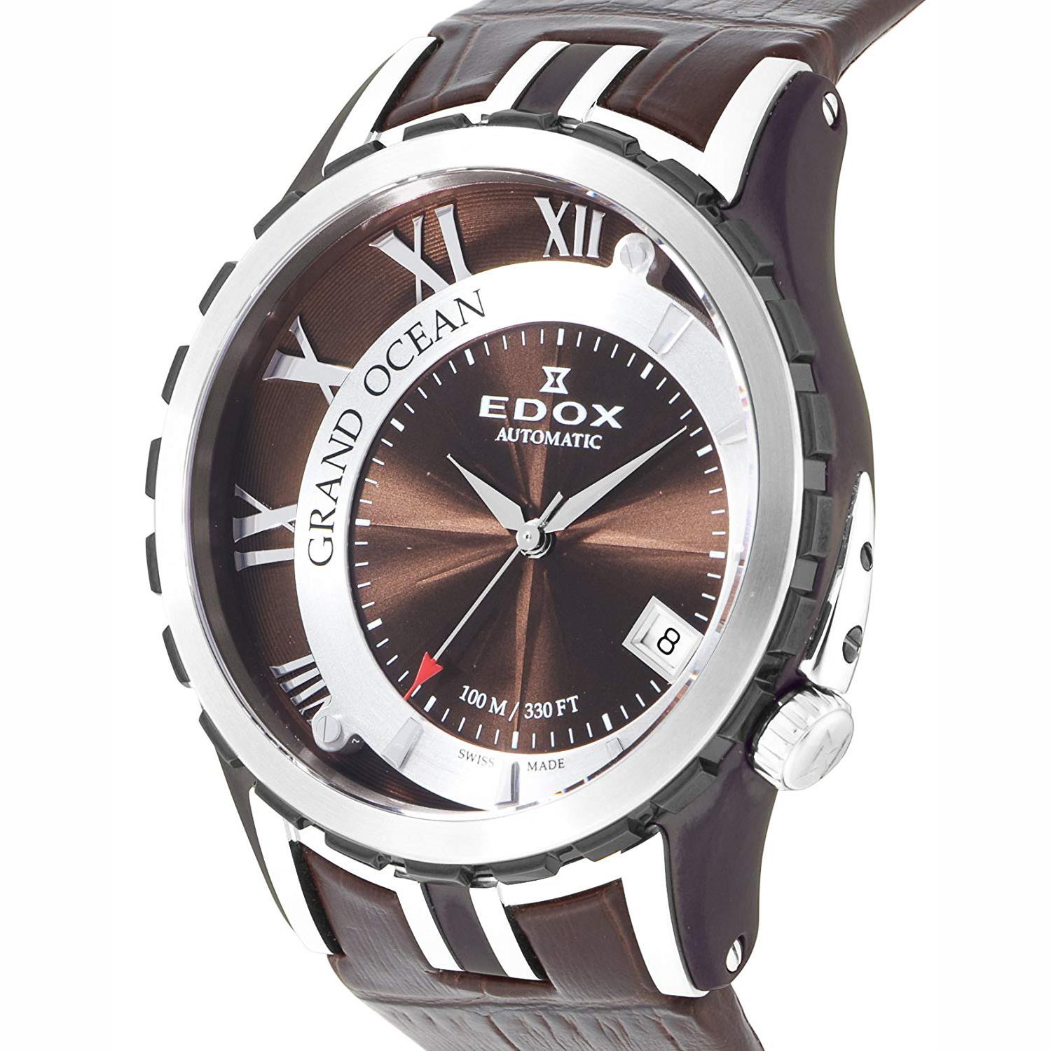 ساعت مچی مردانه/پسرانه ادکس EDOX با طراحی اسپرت قهوه ای رنگ با بند چرم و قاب گرد با شیشه ضد خراش و موتور اتوماتیک با قابلیت تقویم و از خانواده Grand Ocean این ساعت مچی مردانه به همراه دو سال گارانتی بین المللی شرکت جام جم ارائه میگردد