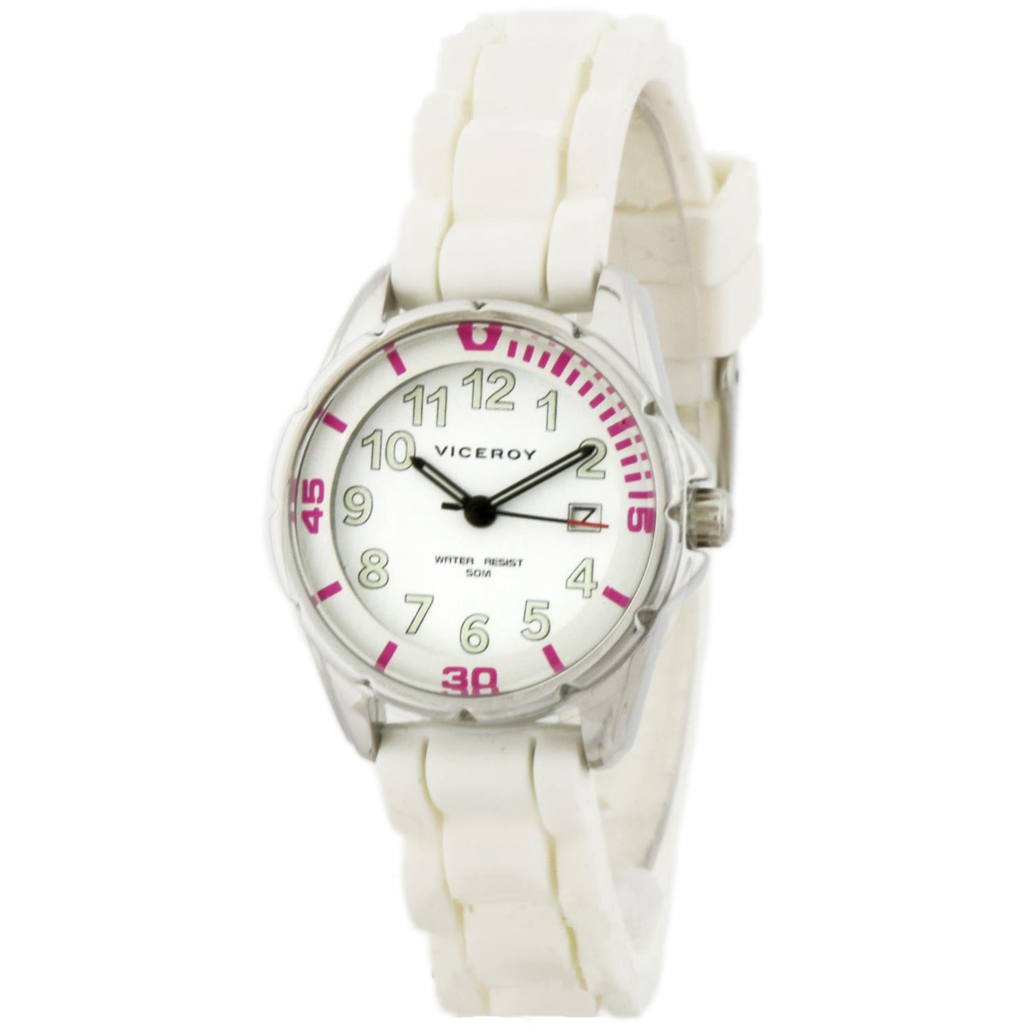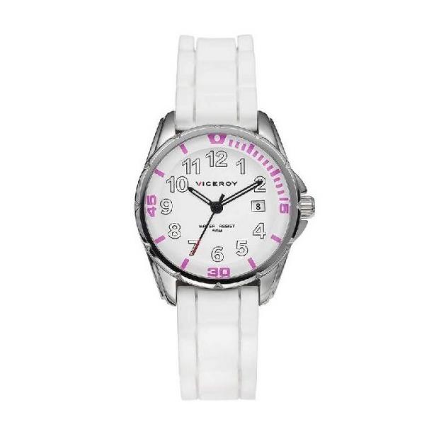 ساعت مچی VICEROY زنانه/دخترانه ویزروی با طراحی اسپرت بند سیلیکونی سفید رنگ با قاب گرد و صفحه سفید و موتور با قابلیت تقویم و انرژی باطری این ساعت مچی زنانه به همراه دو سال گارانتی بین المللی شرکت جام جم ارائه میگردد