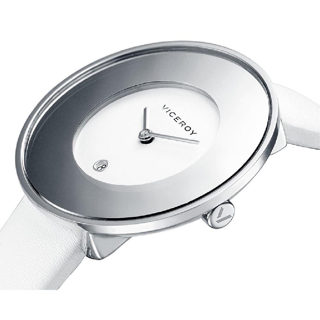 ساعت مچی VICEROY زنانه/دخترانه ویزروی با طراحی فانتزی بند چرم سفید با قاب گرد و صفحه سفید ساده با شیشه دور جیوه ای و موتور با قابلیت تقویم و انرژی باطری این ساعت مچی زنانه به همراه دو سال گارانتی بین المللی شرکت جام جم ارائه میگردد