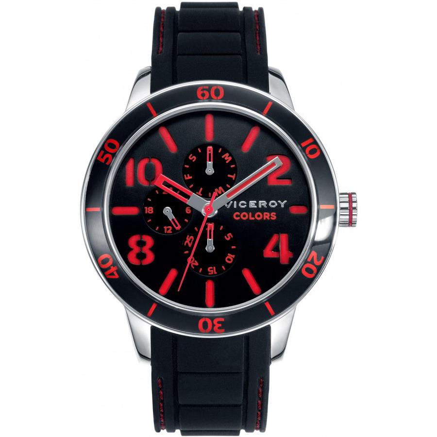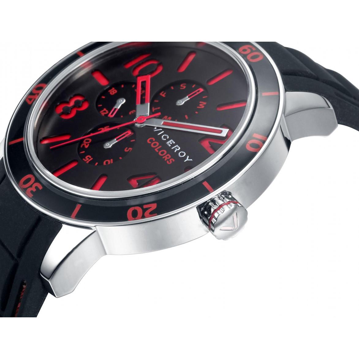 ساعت مچی VICEROY مردانه/پسرانه ویسروی با طراحی اسپرت بند سیلیکونی مشکی رنگ با قاب گرد دو رنگ و صفحه مشکی با تلفیق قرمز و موتور با قابلیت تقویم روز و ماه و انرژی باطری این ساعت مچی مردانه به همراه دو سال گارانتی بین المللی شرکت جام جم ارائه میگردد
