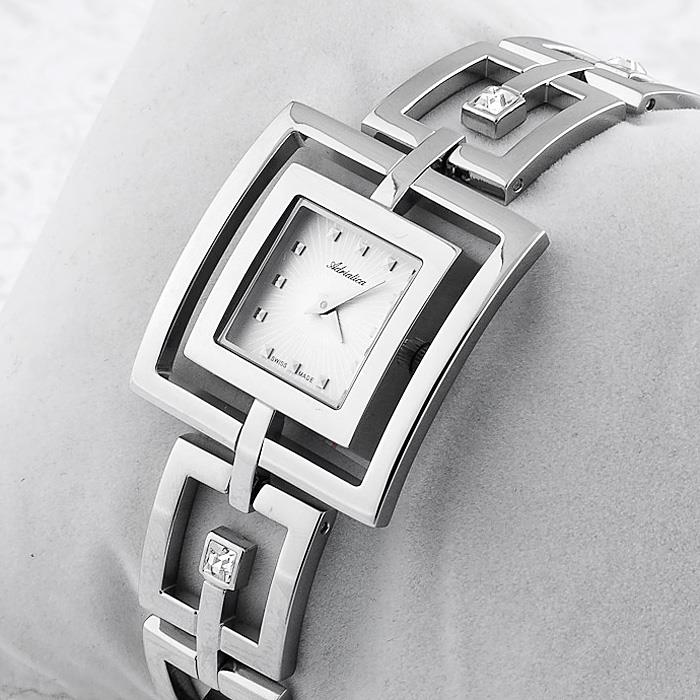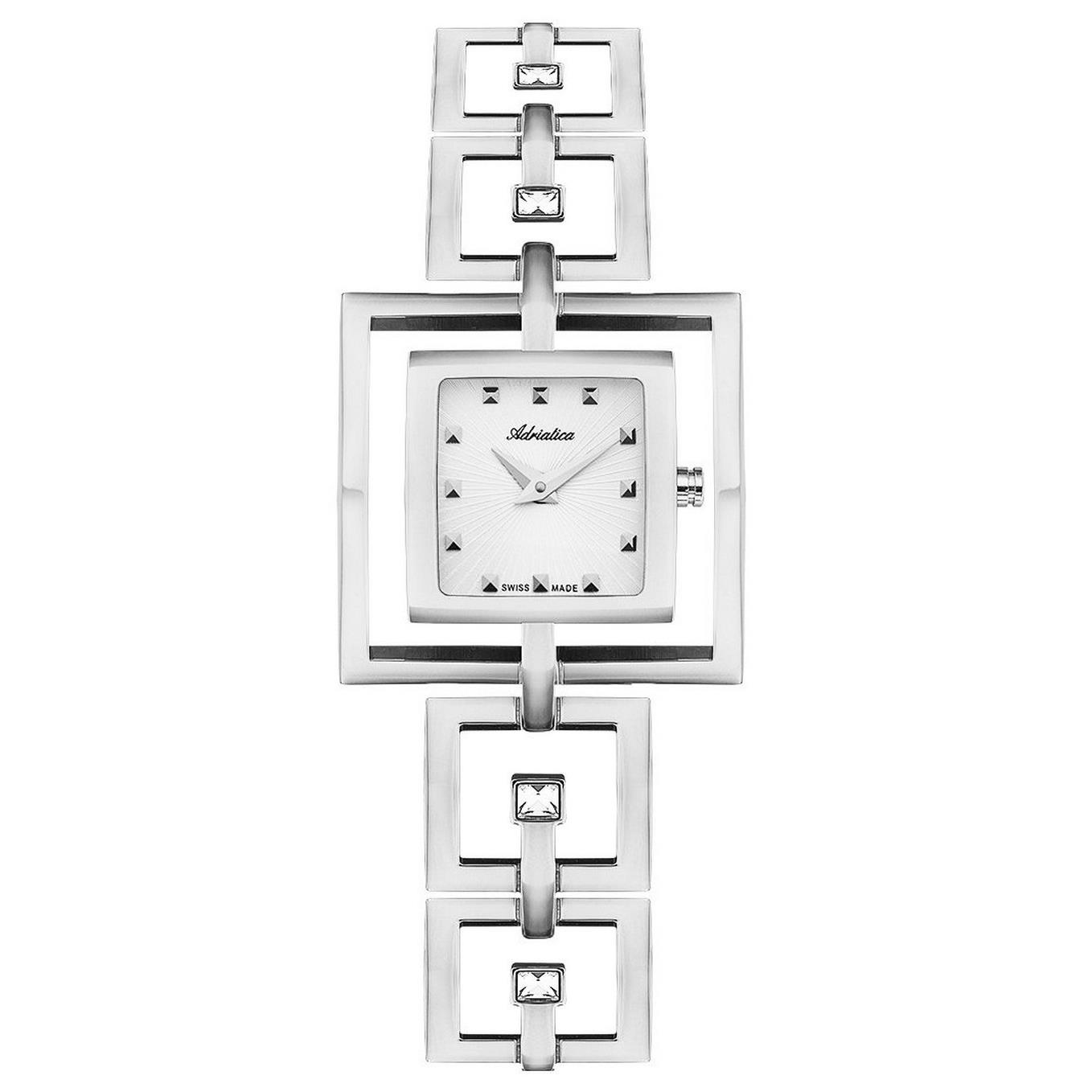 ساعت مچی زنانه/دخترانه آدریاتیکا ADRIATICA با طراحی فانتزی بند فلزی دستبندی مزین به نگین با قاب مربع و صفحه سفید با موتور کوارتز سوییسی و انرژی باطری و مقاوم در برابر آب تا عمق 30 متراین ساعت مچی به همراه دو سال گارانتی بین المللی شرکت آدریاتیکا ارائه میگردد