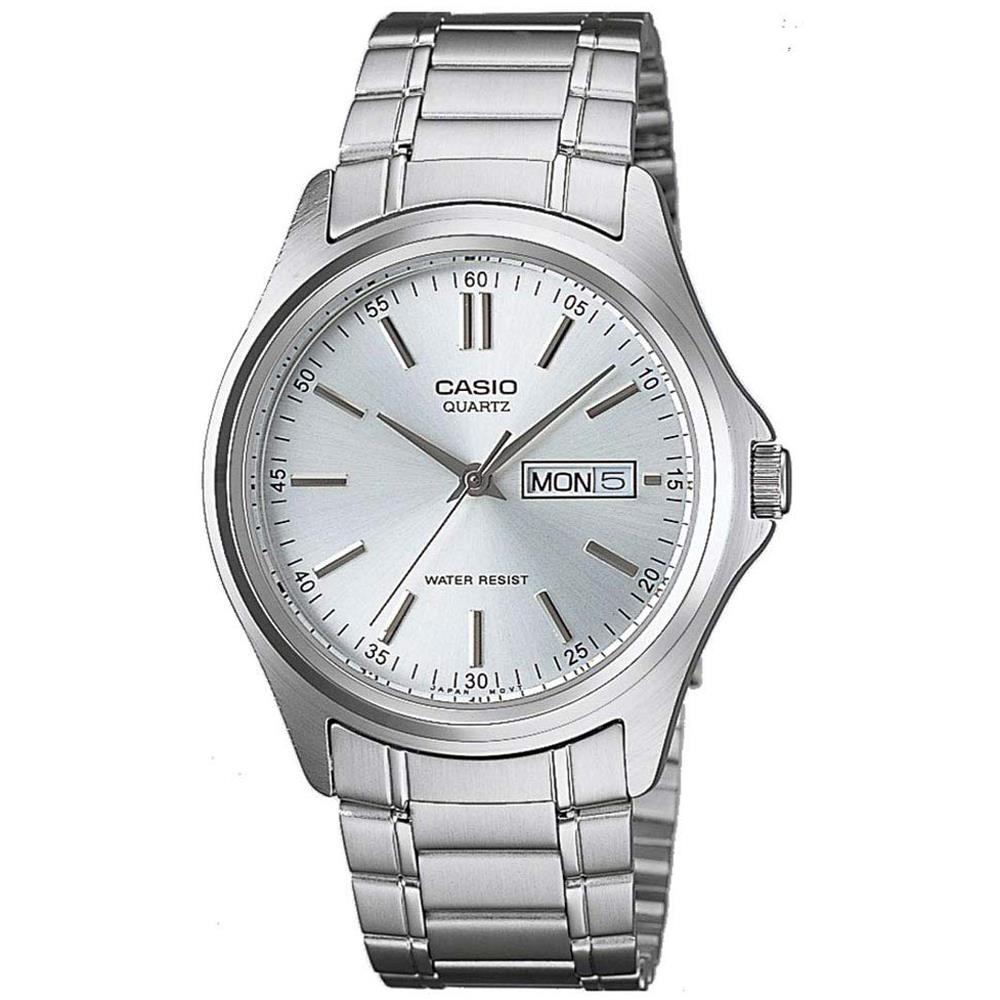 ساعت مچی مردانه/پسرانه کاسیو CASIO با طراحی ساده بند فلزی با قاب گرد و صفحه نقره ای با درج خطوط و موتور ژاپنی با قابلیت تقویم روز و ماه با انرژی باطری از خانواده ENTICER این ساعت مچی مردانه به همراه یک سال گارانتی بین المللی شرکت پارس ارائه میگردد