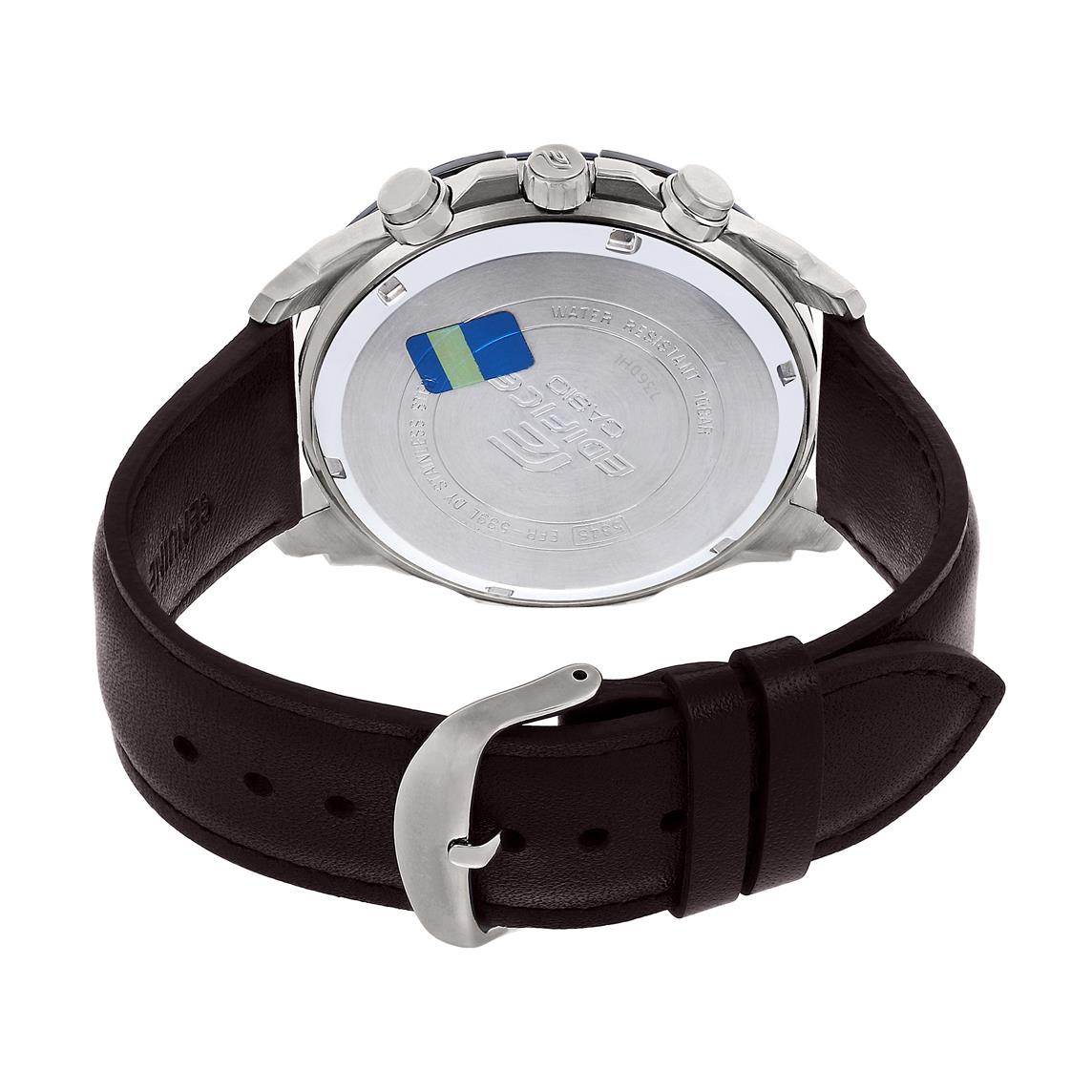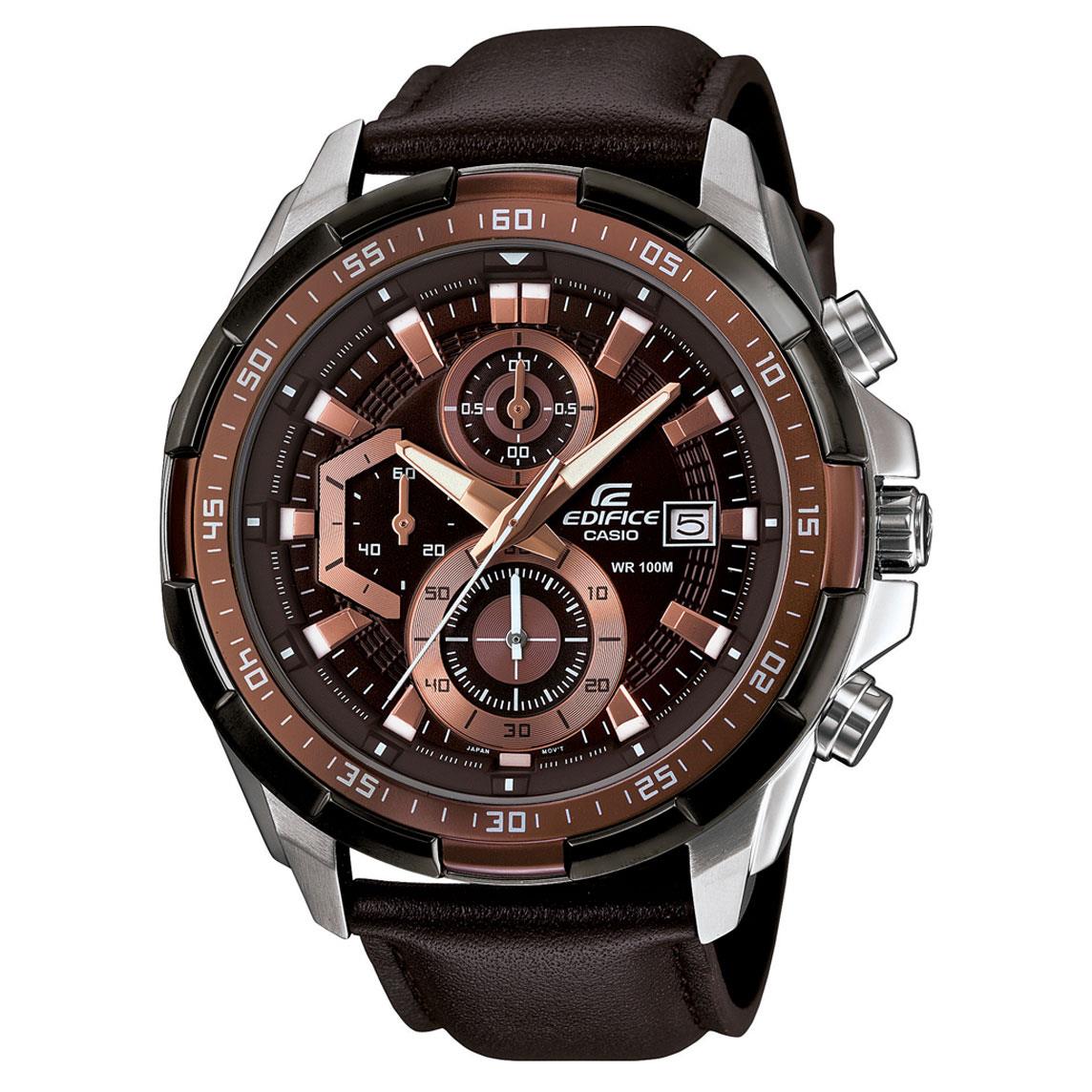 ساعت مچی مردانه/پسرانه کاسیو CASIO با طراحی اسپرت بند چرم قهوه ای با قاب و صفحه دایره شکل دو رنگ با موتور ژاپنی و قابلیت تقویم,کرنومتر با انرژی باطری و مقاوم در برابر آب تا عمق 100 متر از خانواده EDIFICE این ساعت مچی مردانه به همراه یک سال گارانتی بین المللی شرکت پارس ارائه میگردد
