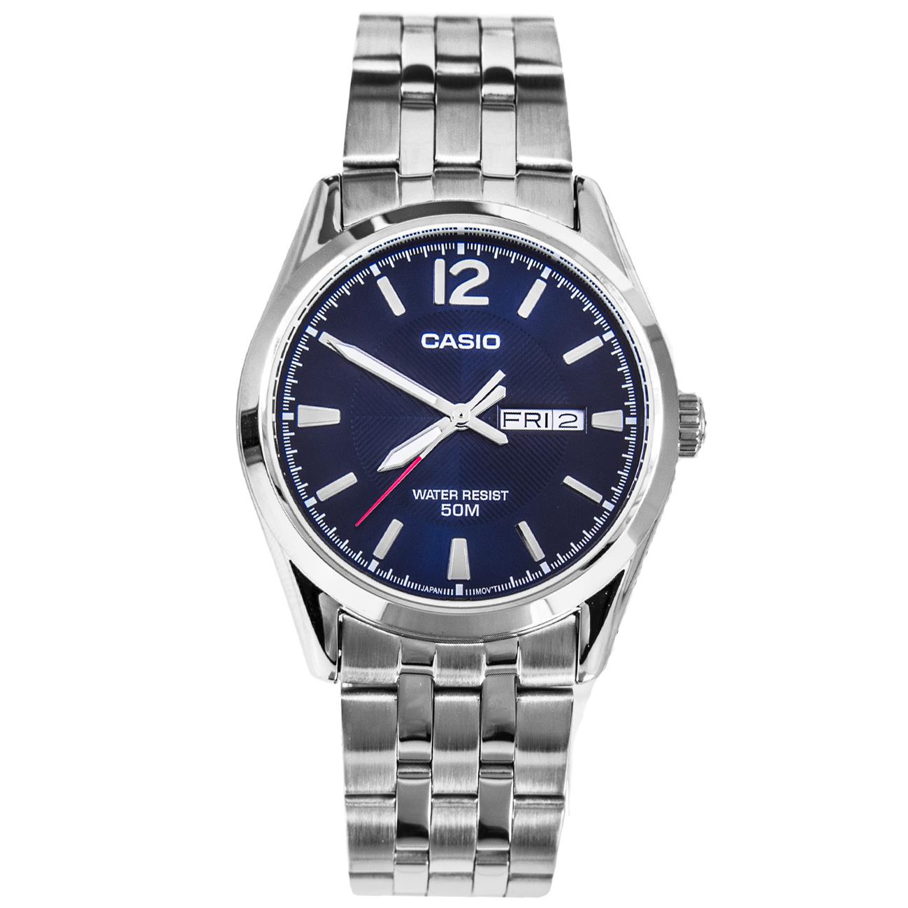 وقتی کلاسیکِ ساده و طراحی بهجا با دوام ژاپنی همراه میشود، نتیجهاش MTP‑1335D‑2AVDF خواهد بود. این مدل از سریهای جذاب کاسیو، با صفحه آبی عمیق، عقربههای شبتاب و قاب استیل، ترکیبی بینقص از استایل روزمره و قابلیت فنی ایجاد کرده است. بند تماماستیل با قفل ایمن، ظاهری شکیل و آرام فراهم میکند.