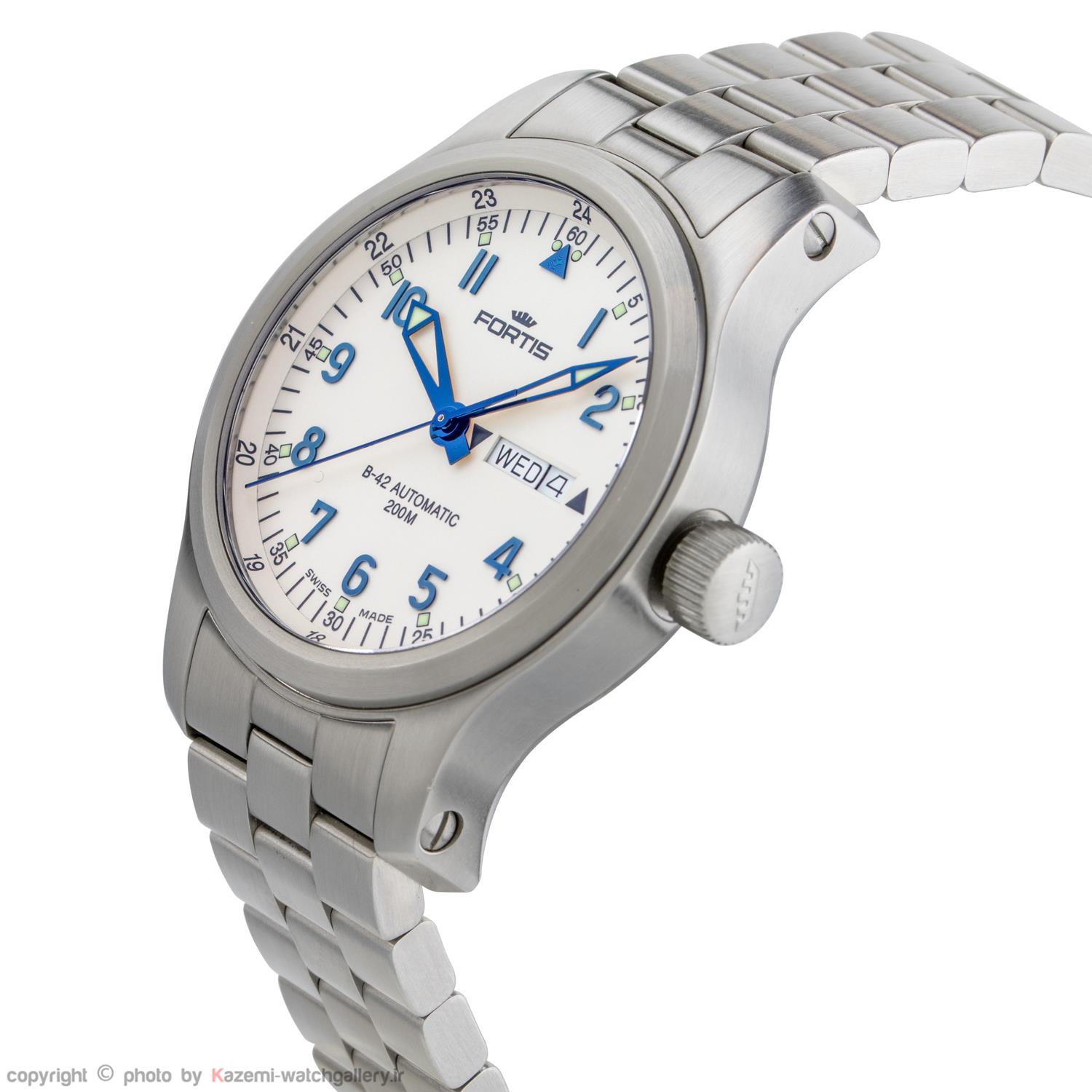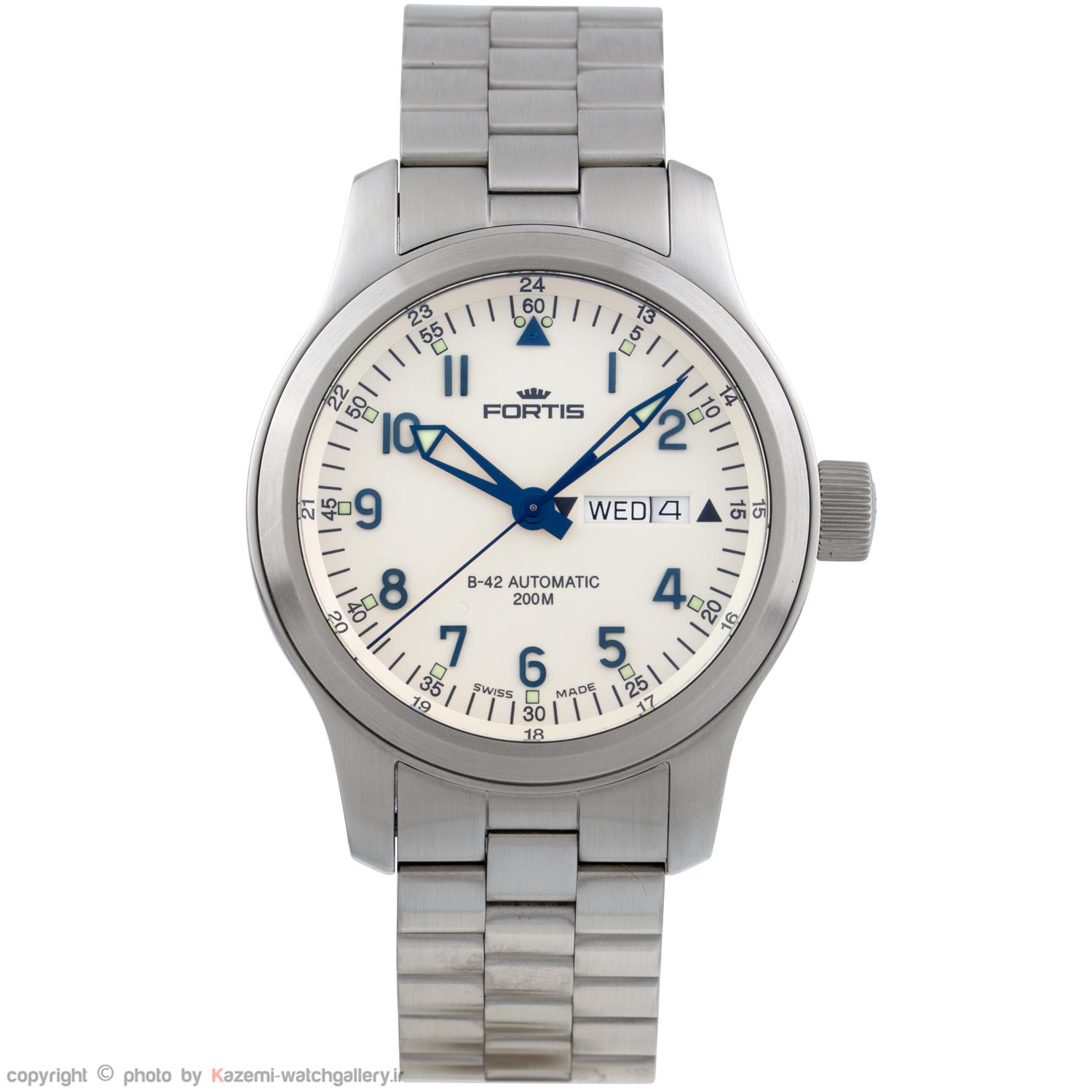 ساعت مچی مردانه/پسرانه فورتیس FORTIS با طراحی روزانه بند فلزی با قاب گرد و صفحه کرم رنگ با درج اعداد انگلیسی و عقربه های سرمه ای زیبا و شبنما با شیشه ضد خراش و موتور سوییسی با قابلیت تقویم روز و ماه و مقاوم در برابر آب تا عمق 200 متر از خانواده B42 Flieger این ساعت مچی مردانه با گارانتی دوساله بین المللی شرکت فورتیس ارائه میگردد