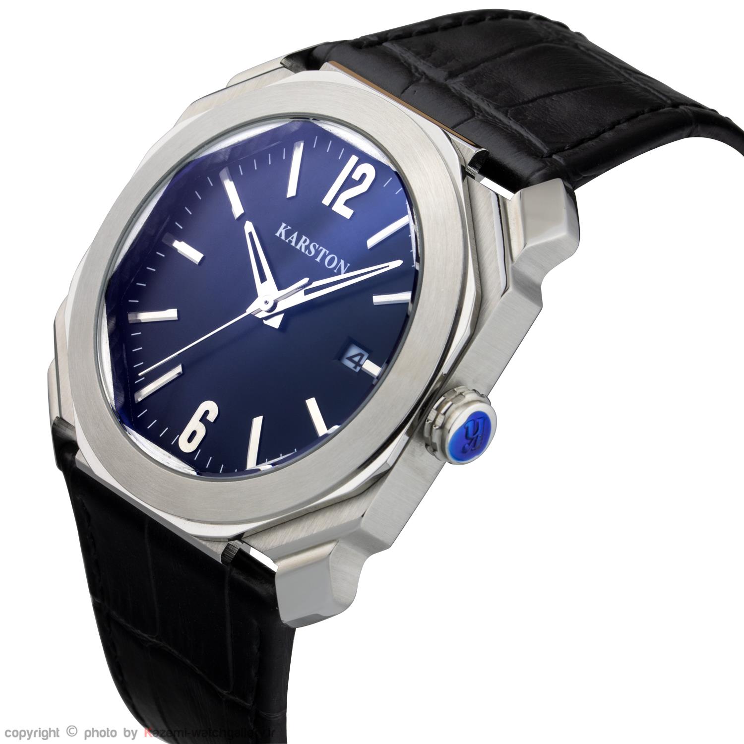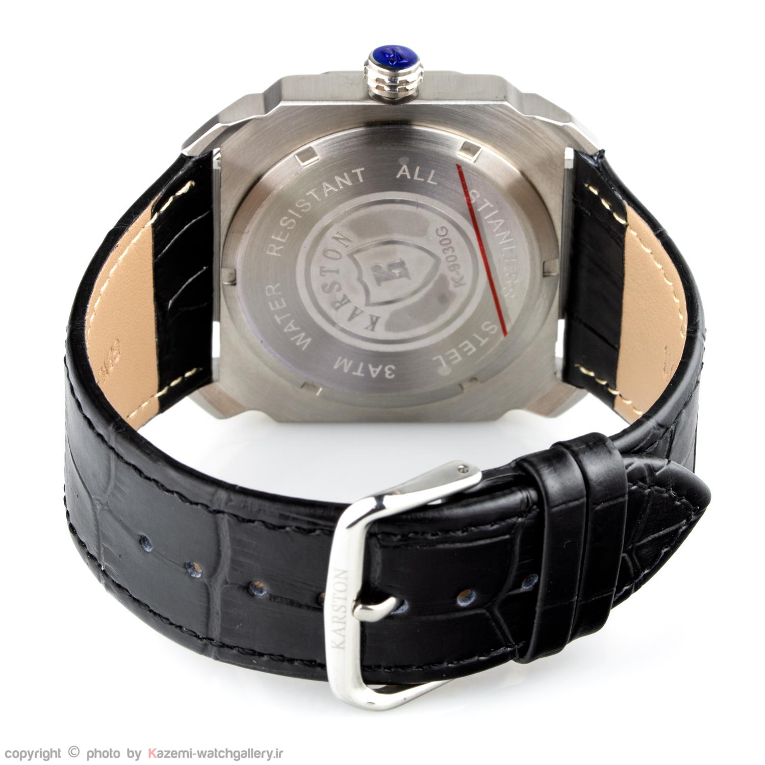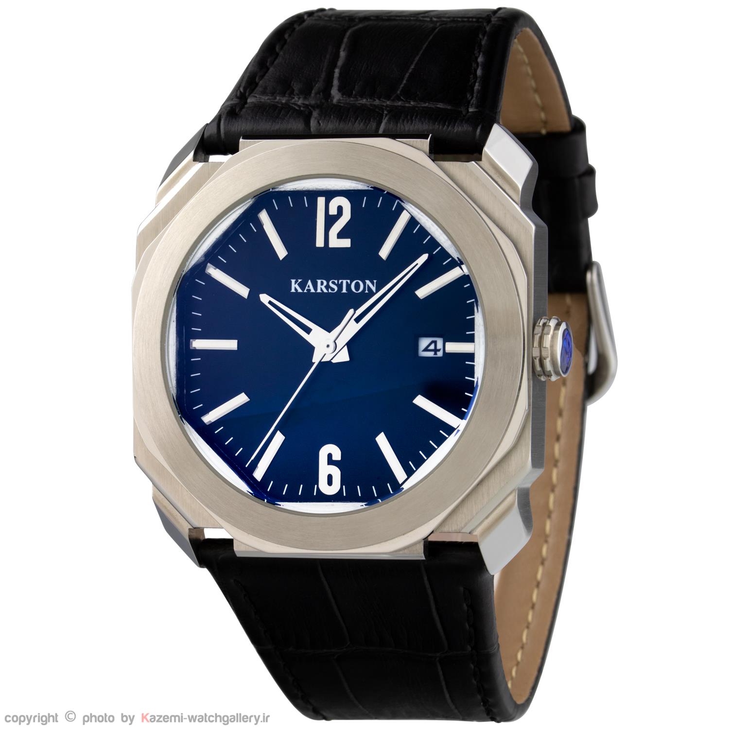 ساعت مچی کارستون KARSTON مردانه/پسرانه با طراحی روزانه بند چرم مشکی با قاب متفاوت و صفحه مشکی با درج خطوط و شیشه محدب با موتور ژاپنی و انرژی باطری و مقاوم در برابر آب تا عمق 30 متر به همراه دو سال گارانتی شرکت کارستون در ایران