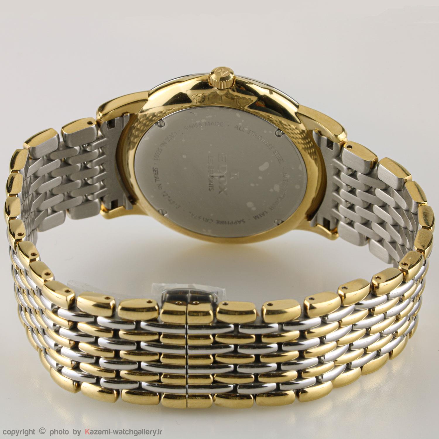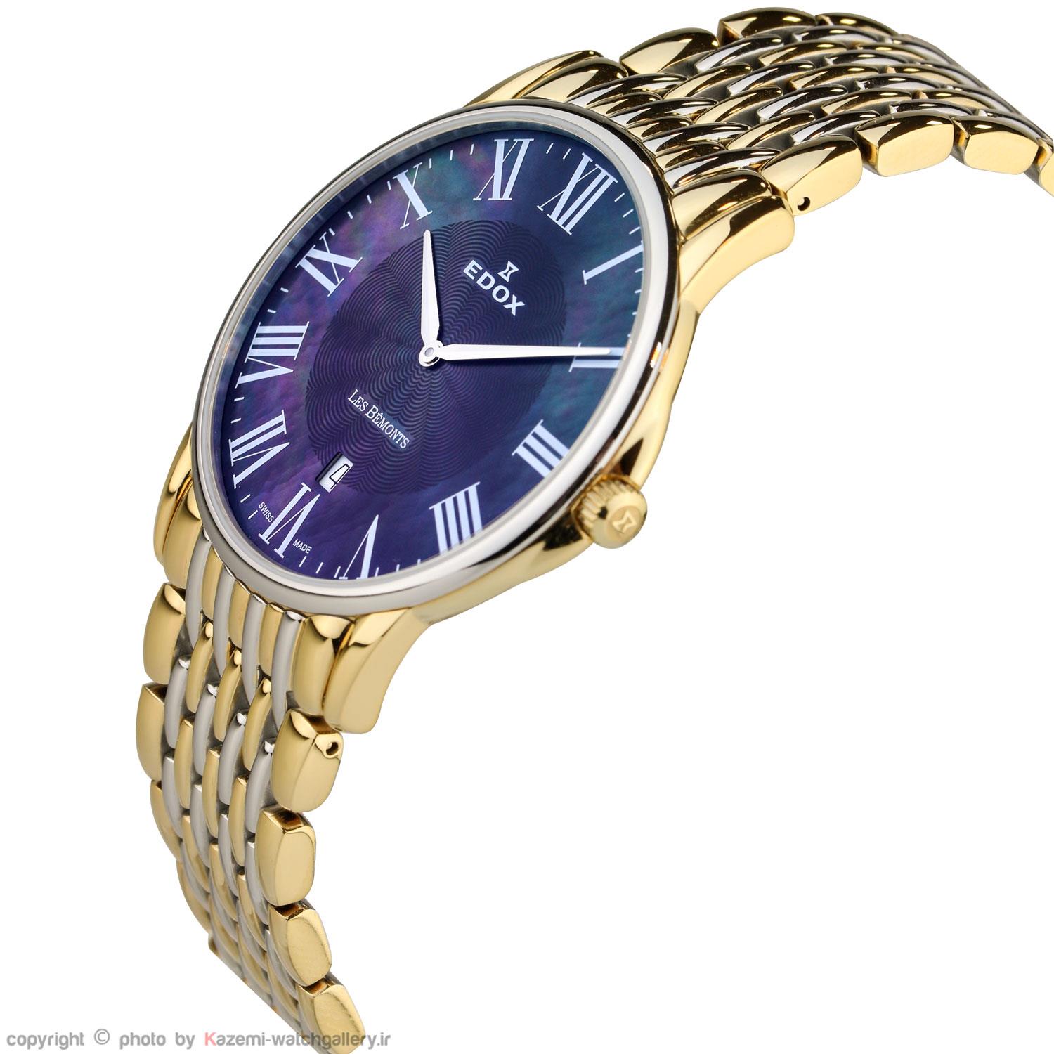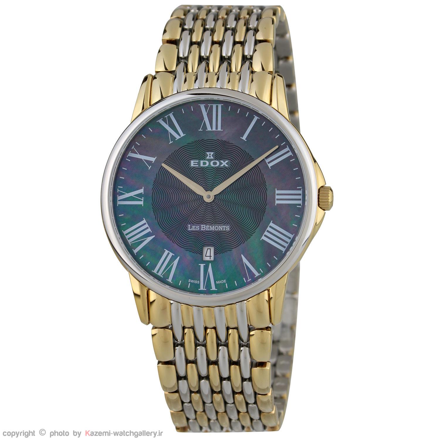 ساعت مچی مردانه ادکس EDOX  با طراحی روزانه دو رنگ بند فلزی با قاب گرد و صفحه مشکی صدفی با شیشه ضد خراش و موتور سوییسی با قابلیت تقویم و انرژی باطری و مقاوم در برابر آب تا عمق 30 متر و از خانواده Les Bemonts این ساعت مچی مردانه به همراه دو سال گارانتی بین المللی شرکت جام جم ارائه میگردد