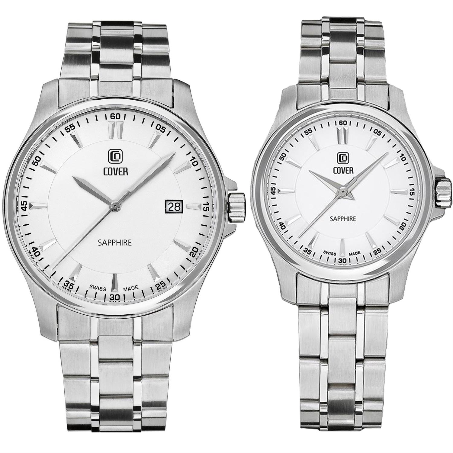 ساعت مچی ست مردانه/زنانه کاور COVER با طراحی کلاسیک بند فلزی با قاب گرد و صفحه سفید با موتور سوییسی با قابلیت تقویم و انرژی باطری و مقاوم در برابر آب تا عمق 50 متراین ساعت مچی به همراه دو سال گارانتی بین المللی شرکت بازرگانی زمردیان ارائه میگردد