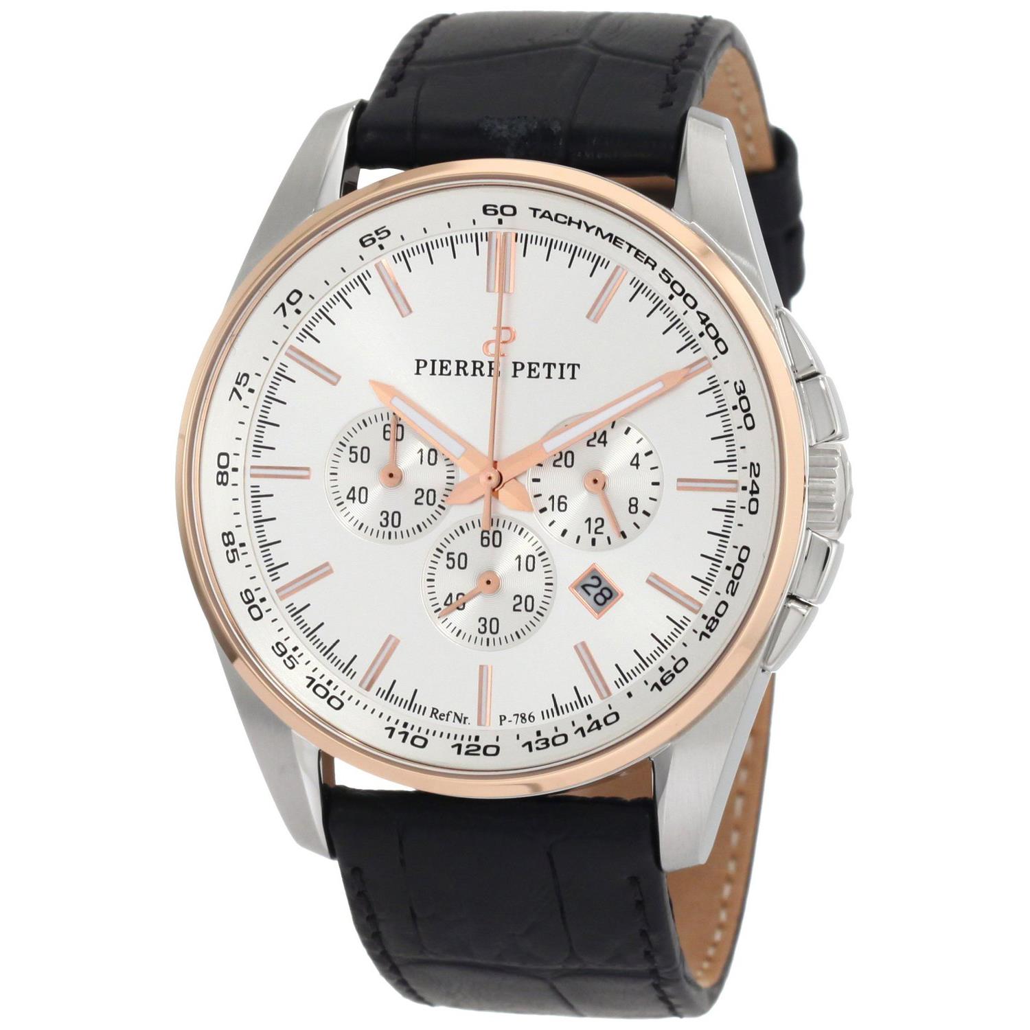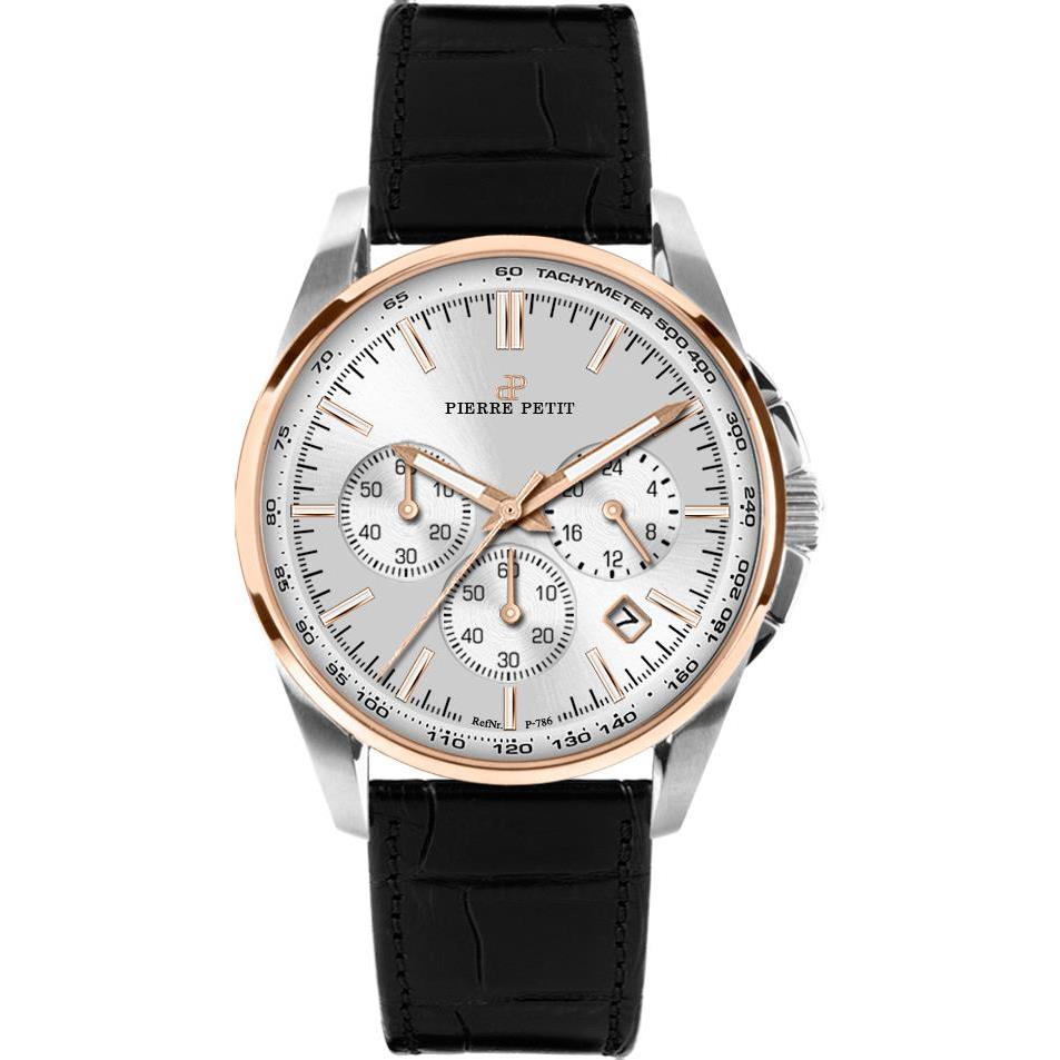 ساعت مچی مردانه/پسرانه  پیرپتی PIERRE PETITبا طراحی اسپرت بند چرم مشکی و قاب گرد دو رنگ و موتور با نمایش کرنوگراف و تقویم این ساعت مچی مردانه به همراه دو سال گارانتی بین المللی شرکت پیرپتی ارائه میگردد