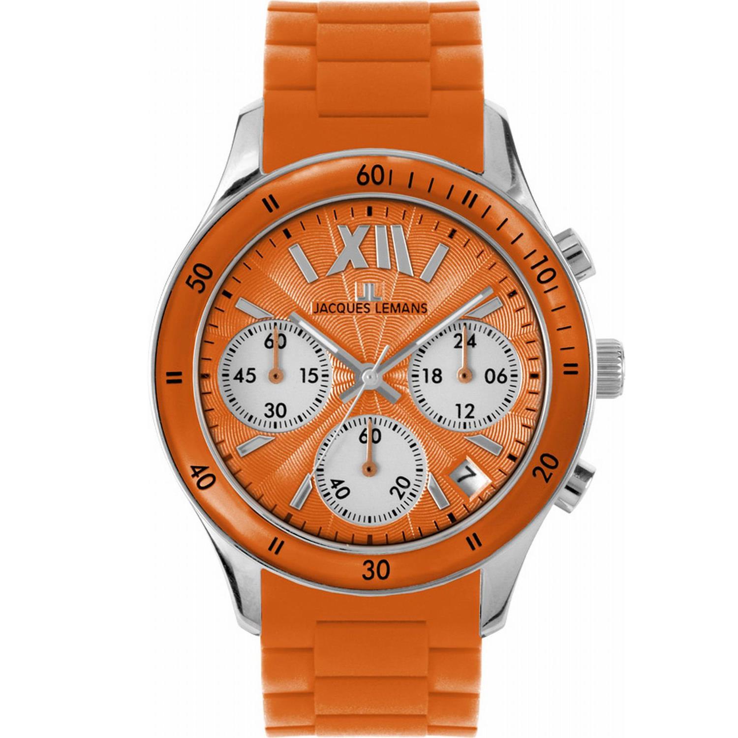 ساعت مچی مردانه/پسرانه ژاک لمن JACQUES LEMANSبا طراحی اسپرت بند رابر نارنجی رنگ و موتور کرنوگراف با قاب گرد از خانواده Rome Sports این ساعت مچی مردانه به همراه دو سال گارانتی بین المللی شرکت ژاک لمن ارائه میگردد