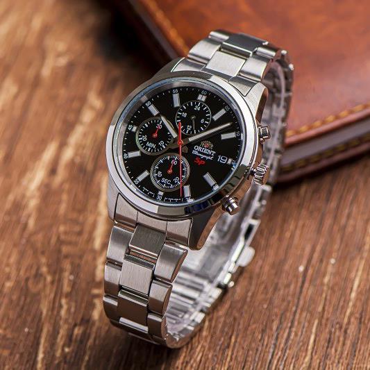 صفحه مشکی با موتور ژاپنی و قابلیت تقویم ,کرنومتر با انرژی باطری و مقاوم در برابر آب تا عمق 50 متر به همراه دو سال گارانتی بین المللی شرکت آرمان گالری