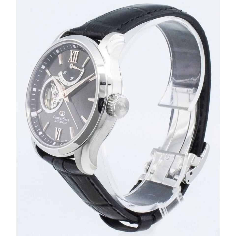 ساعت مچی مردانه/پسرانه ORIENT ارینت از خانواده ارینت استار با طراحی روزانه بند چرم قهوه ای با قاب گرد فلزی و صفحه قهوه ای قلب باز با شیشه ضدخراش و موتور اتوماتیک ژاپنی با قابلیت نمایش ذخیره انرژی تا 50 ساعت به همراه دو سال گارانتی بین المللی شرکت آرمان گالری