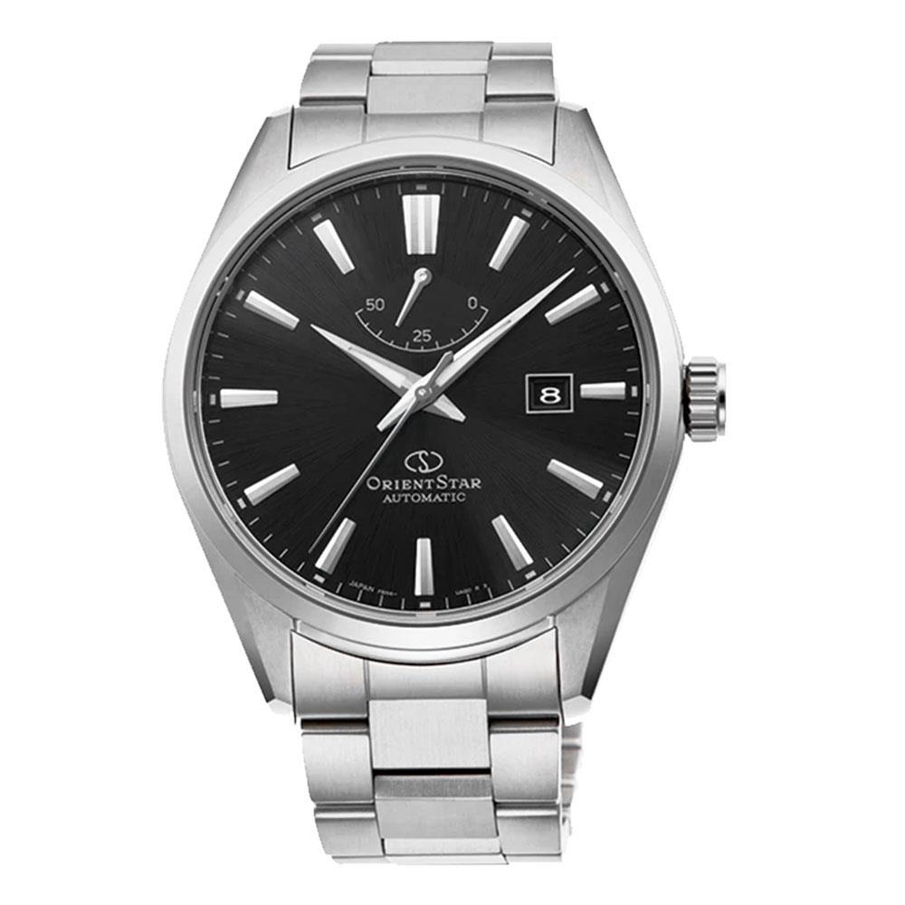 ساعت مچی مردانه/پسرانه ORIENT ارینت با طراحی روزانه بند فلزی با قاب گرد و صفحه مشکی با شیشه ضدخراش و موتور اتوماتیک ژاپنی با قابلیت تقویم ,نمایش ذخیره انرژی و مقاوم در برابر آب تا عمق 50 متر به همراه دو سال گارانتی بین المللی شرکت آرمان گالری