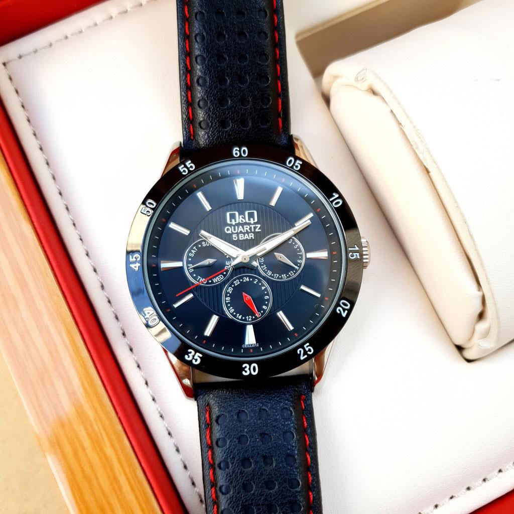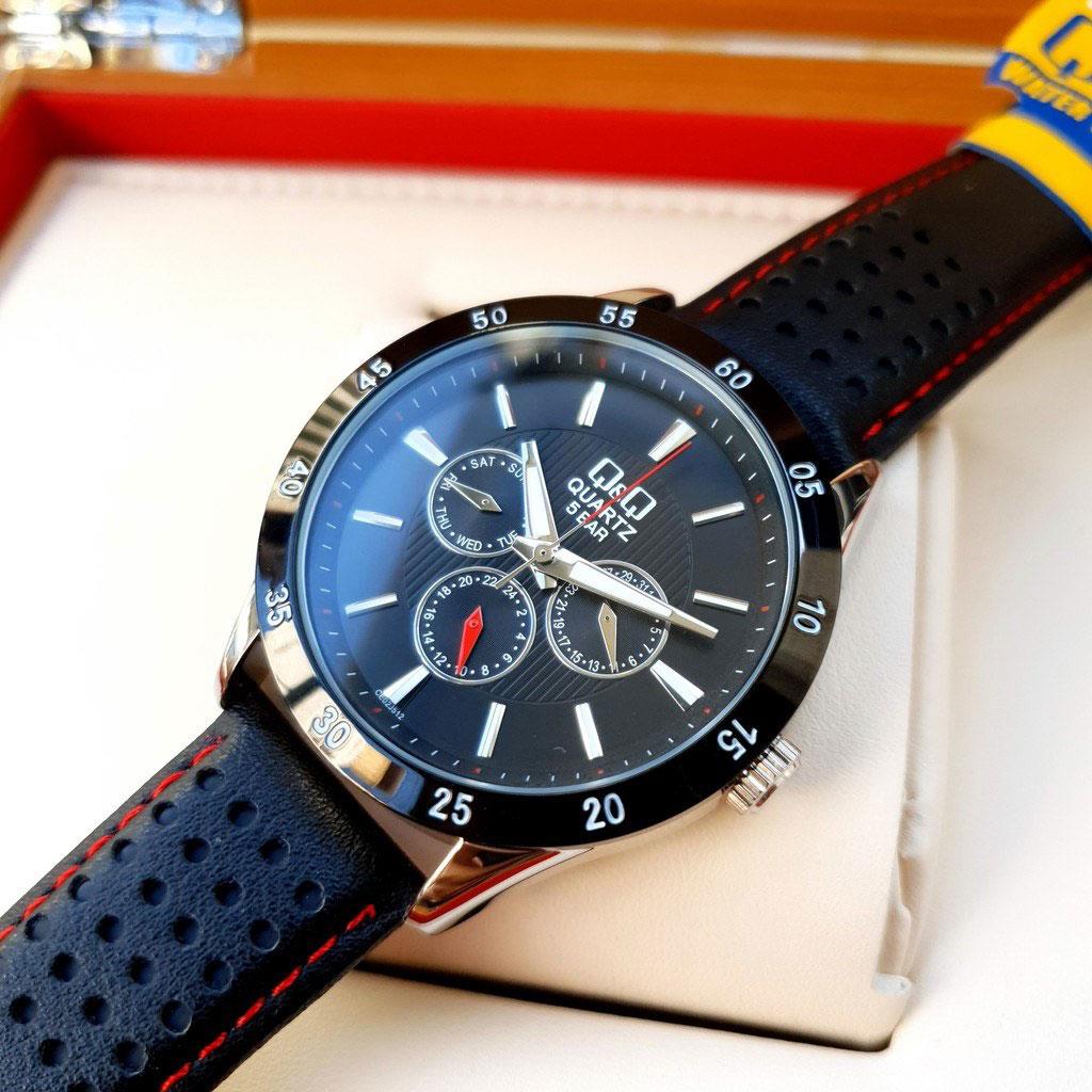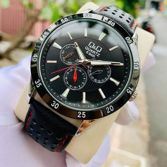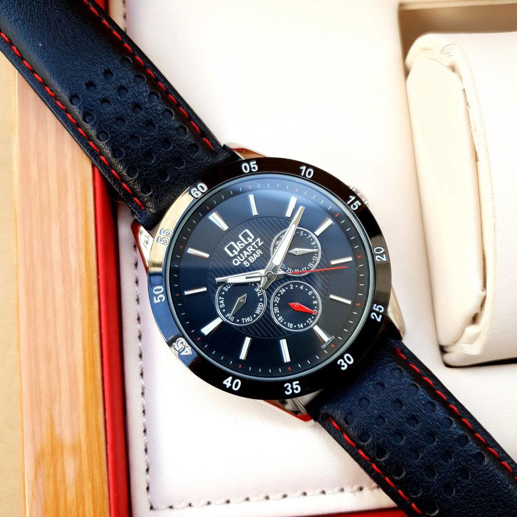 ساعت مچی مردانه/پسرانه کیو اند کیوQQ  با طراحی روزانه بند چرم مشکی با قاب گرد دو رنگ و صفحه مشکی با موتور ژاپنی و قابلیت تقویم روز و ماه با انرژی باطری و مقاوم در برابر آب تا عمق 30 متر این ساعت مچی مردانه به همراه یک سال گارانتی شرکت بازرگانی زمان ارائه میگردد