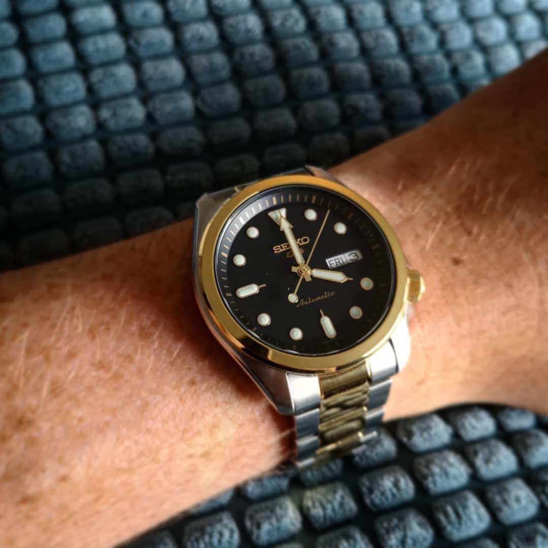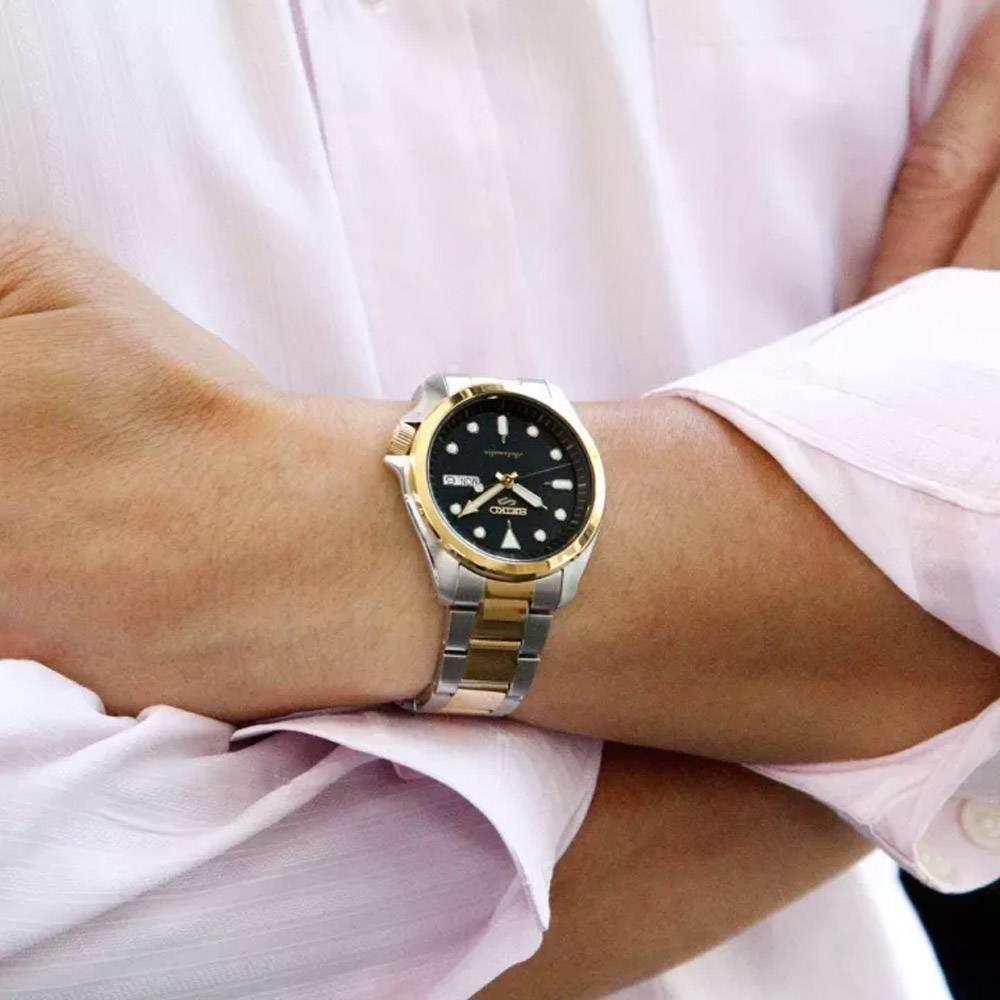 ساعت مچی مردانه سیکو SEIKO با طراحی کلاسیک دو رنگ بند فلزی با قاب گرد و صفحه مشکی با موتور اتوماتیک ژاپنی و قابلیت تقویم روز و ماه با انرژی مکانیکی و مقاوم در برابر آب تا عمق 100 متراین ساعت مچی مردانه به همراه دو سال گارانتی بین المللی ارائه میگردد