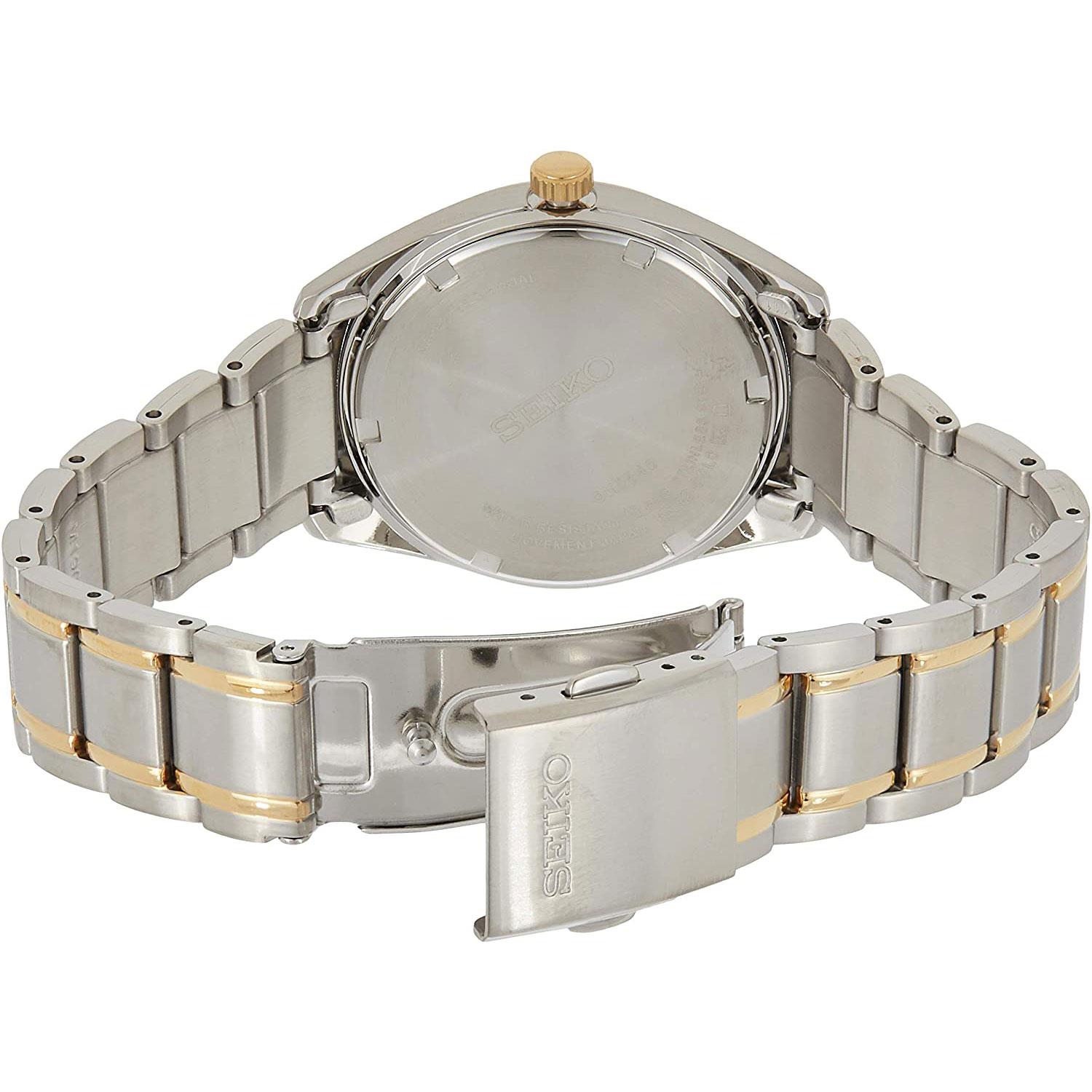 ساعت مچی مردانه سیکو SEIKO با طراحی کلاسیک دو رنگ بند فلزی با قاب گرد فلزی و صفحه نقره ای با موتور ژاپنی و قابلیت تقویم روز و ماه با انرژی باطری و مقاوم در برابر آب تا عمق 100 متراین ساعت مچی مردانه به همراه دو سال گارانتی بین المللی ارائه میگردد