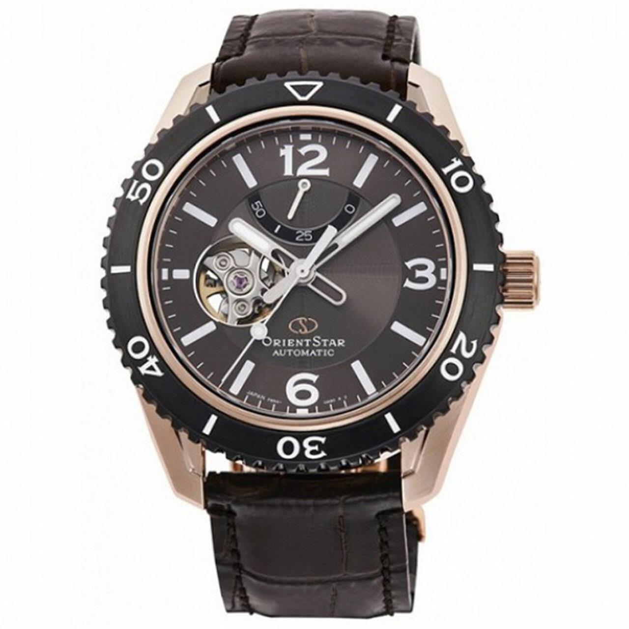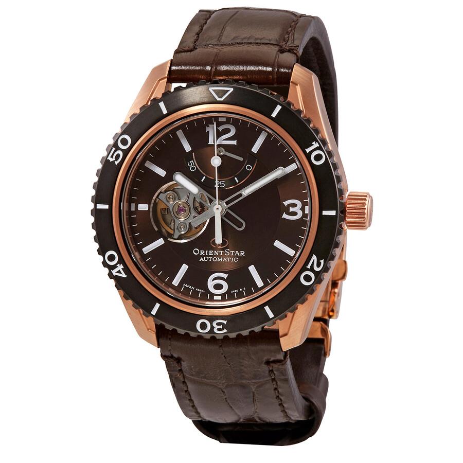 ساعت مچی مردانه/پسرانه ORIENT ارینت با طراحی روزانه بند چرم قهوه ای مجهز به قفل کلیپسی با قاب گرد دو رنگ مجهز به زه چرخان و صفحه قهوه ای قلب باز با شیشه ضدخراش و موتور اتوماتیک ژاپنی با قابلیت شاخص ذخیره انرژی با انرژی مکانیکی و مقاوم در برابر آب تا عمق 200 متر به همراه دو سال گارانتی بین المللی