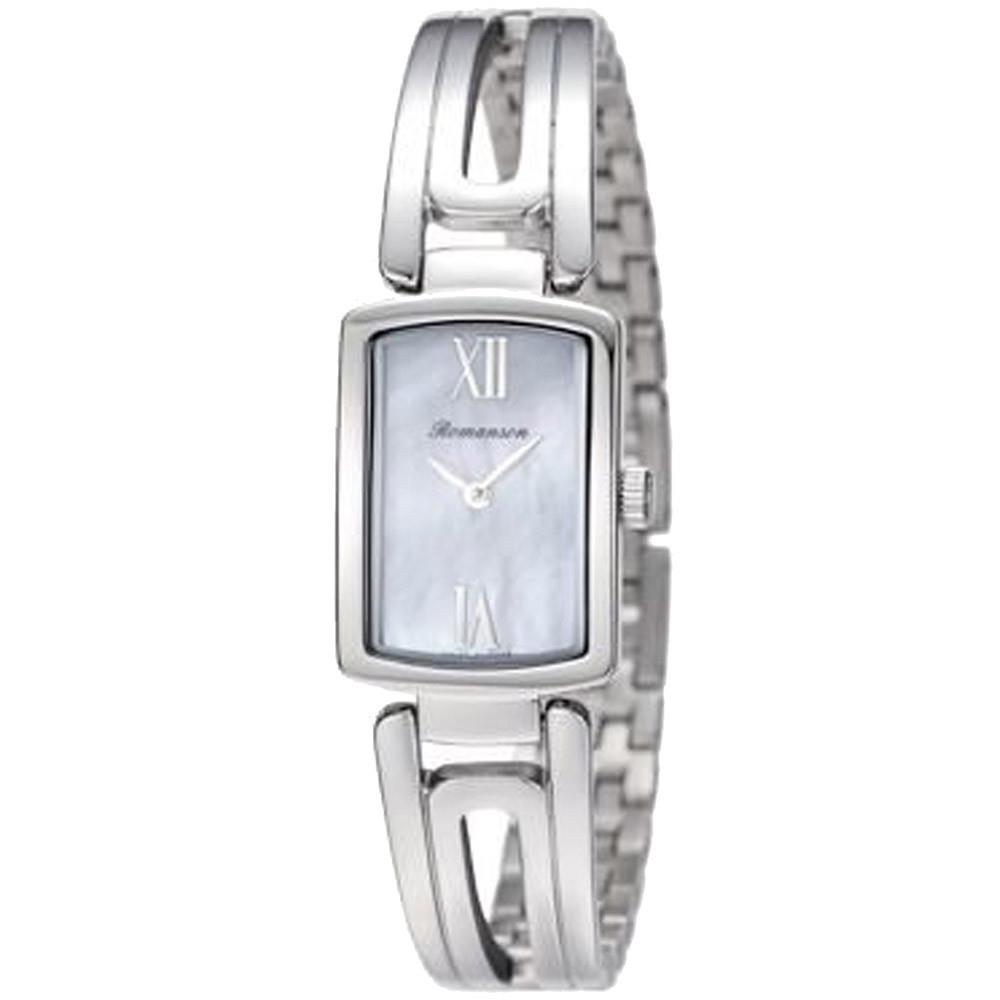 ساعت مچی زنانه/دخترانه رومانسون ROMANSON با طراحی فانتزی بند فلزی نگین دار با قاب مستطیل و صفحه صدفی با موتور سوییسی و انرژی باطری و مقاوم در برابر آب تا عمق 30 متراین ساعت مچی زنانه به همراه دو سال گارانتی بین المللی شرکت آناهید زروان ارائه میگردد