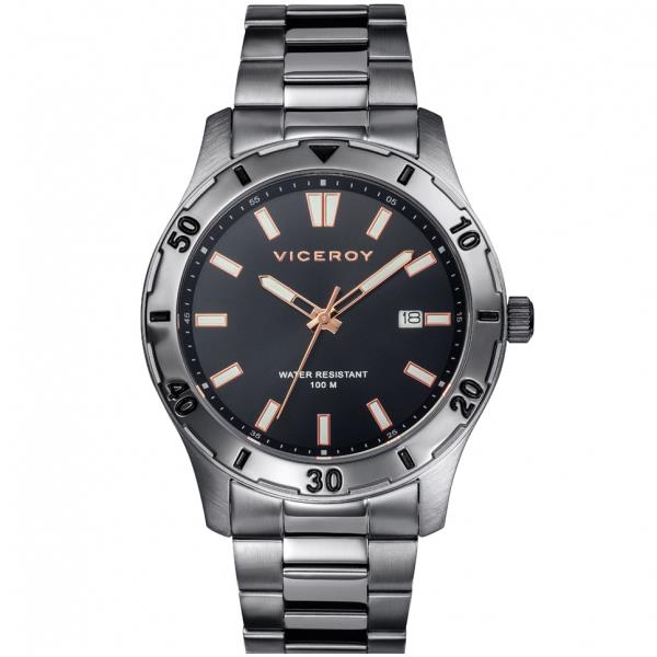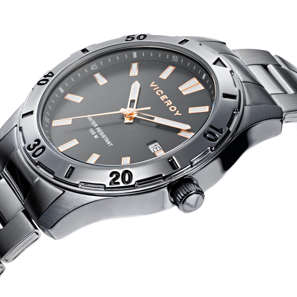 ساعت مچی مردانه ویزروی با طراحی روزانه طوسی رنگ بند فلزی با قاب گرد و صفحه مشکی با موتور ژاپنی و قابلیت تقویم و انرژی باطری و مقاوم در برابر آب تا عمق 100 متراین ساعت مچی به همراه دو سال گارانتی بین المللی شرکت جام جم ارائه میگردد