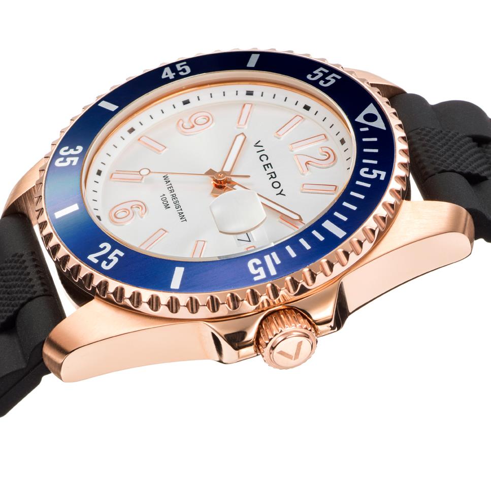 ساعت مچی مردانه ویزروی VICEROY با طراحی روزانه بند سیلیکونی مشکی با قاب گرد دو رنگ مجهز به زه چرخان و صفحه سفید رنگ و موتور ژاپنی با قابلیت تقویم و انرژی باطری و مقاوم در برابر آب تا عمق 100 متراین ساعت مچی به همراه دو سال گارانتی بین المللی شرکت جام جم ارائه میگردد