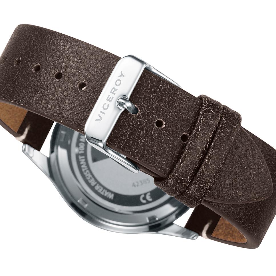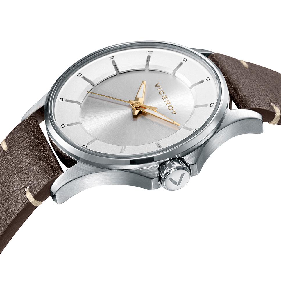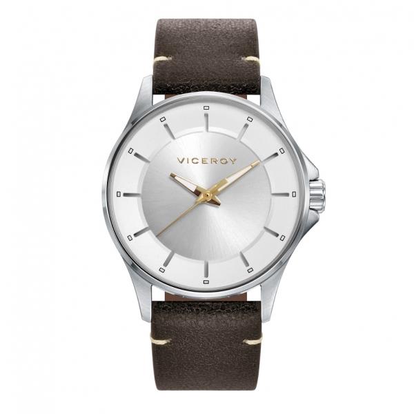 ساعت مچی مردانه ویزروی VICEROY با طراحی کلاسیک بند چرم قهوه ای با قاب گرد فلزی و صفحه نقره ای با موتور زاپنی و انرژی باطری و مقاوم در برابر آب تا عمق 100 متراین ساعت مچی به همراه دو سال گارانتی بین المللی شرکت جام جم ارائه میگردد
