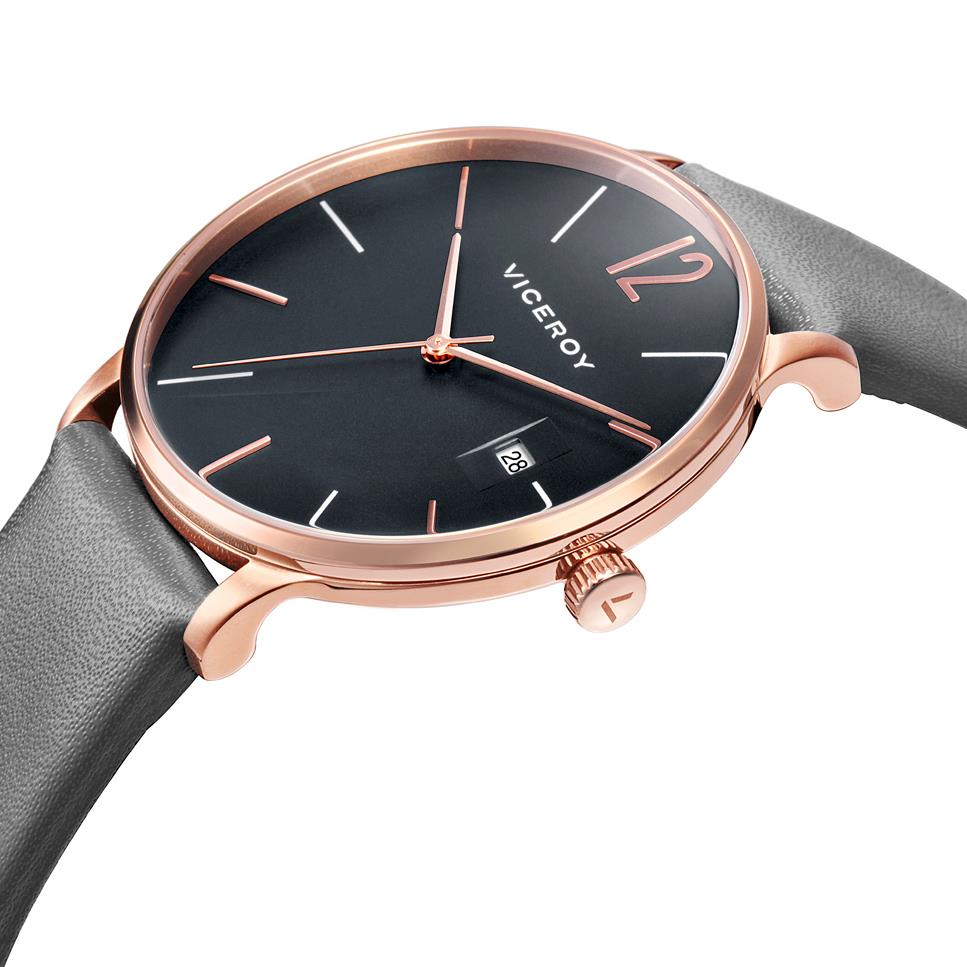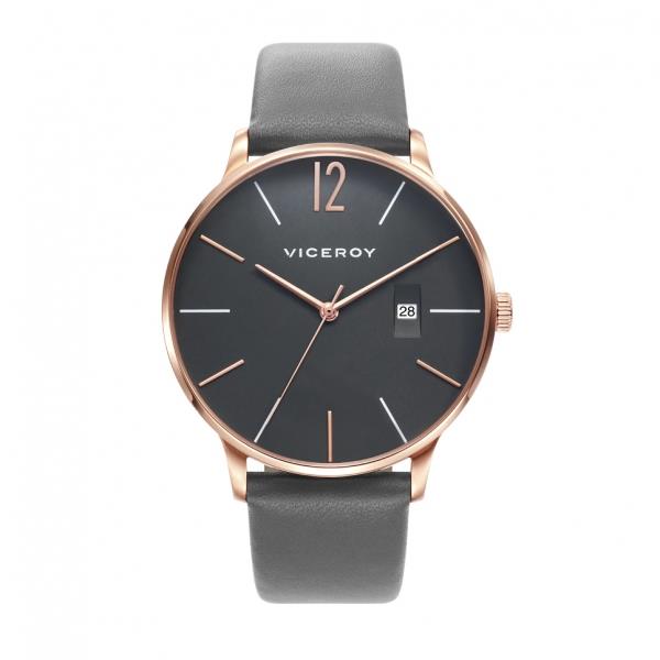 ساعت مچی مردانه ویزروی با طراحی کلاسیک بند چرم طوسی با قاب گرد رزگلد و صفحه طوسی با موتور ژاپنی و قابلیت تقویم و انرژی باطری و مقاوم در برابر آب تا عمق 30 متراین ساعت مچی به همراه دو سال گارانتی بین المللی شرکت جام جم ارائه میگردد