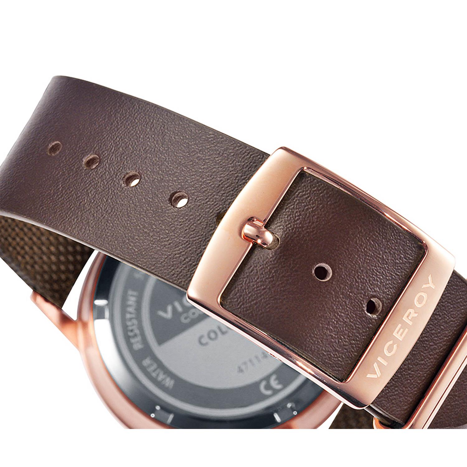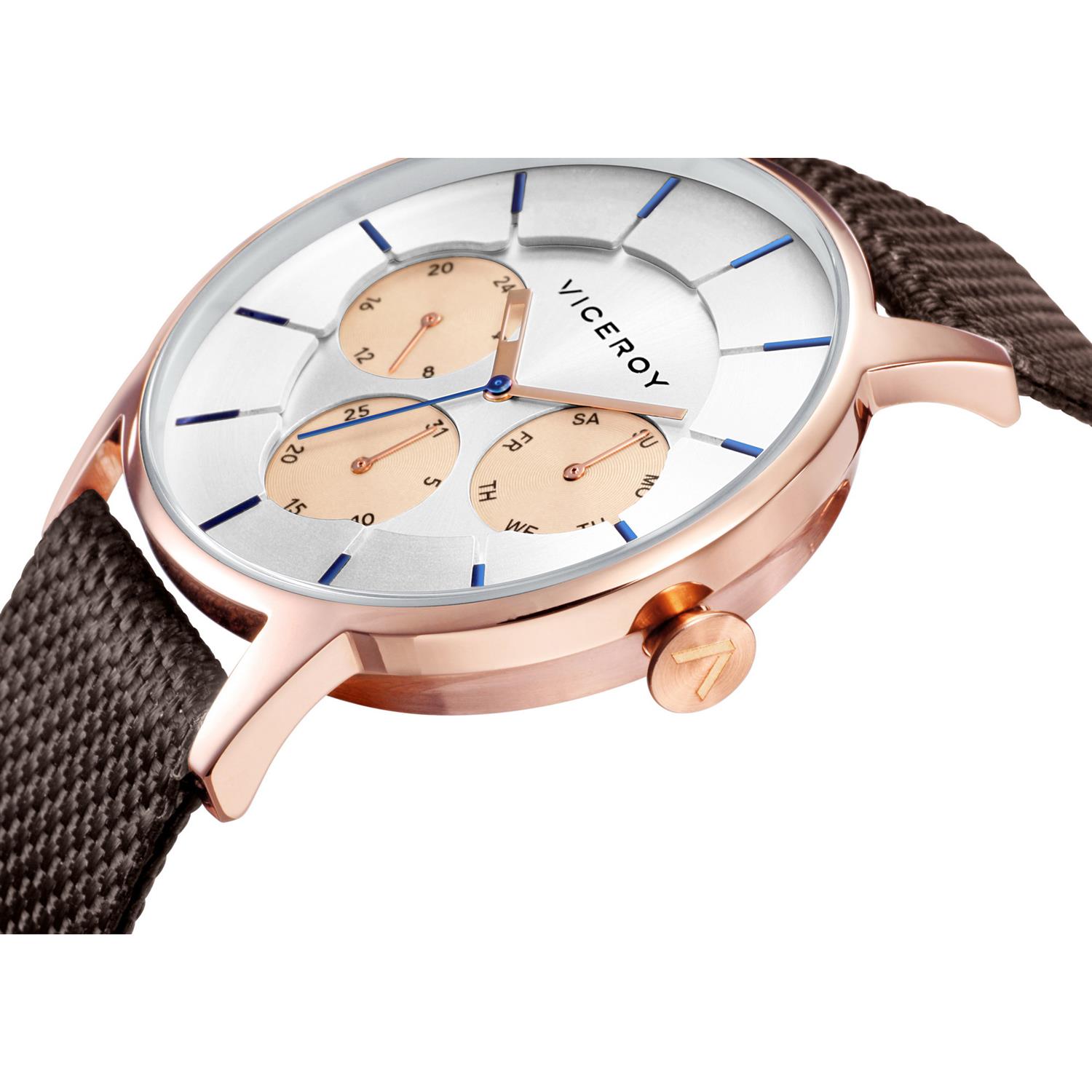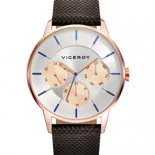 ساعت مچی مردانه ویزروی VICEROY با طراحی روزانه بند چرم قهوه ای با قاب گرد رزگلد و صفحه دو رنگ با موتور ژاپنی و قابلیت تقویم روز و ماه با انرژی باطری و مقاوم در برابر آب تا عمق 50 متراین ساعت مچی به همراه دو سال گارانتی بین المللی شرکت جام جم ارائه میگردد