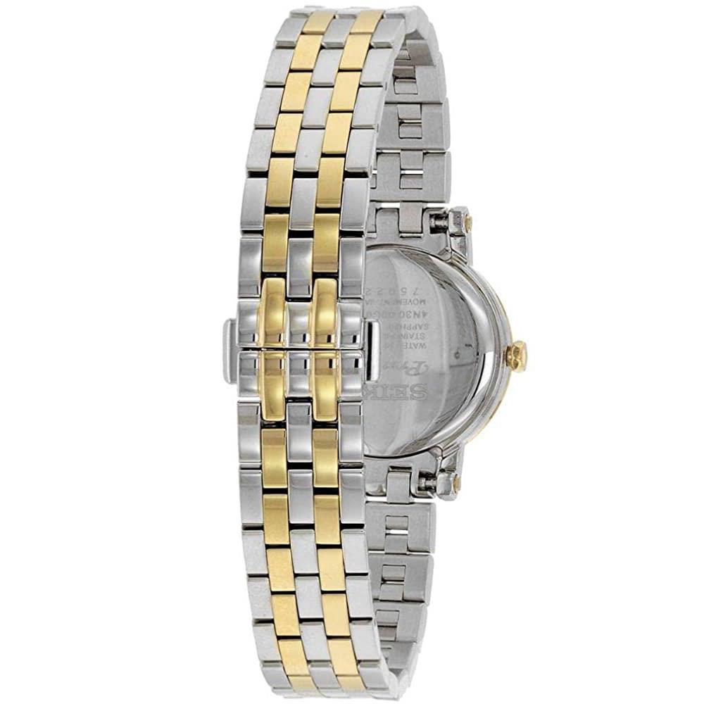 ساعت مچی زنانه سیکو SEIKO با طراحی کلاسیک دو رنگ بند فلزی با قاب گرد و صفحه نقره ای با درج اعداد یونانی با شیشه ضد خراش و موتور ژاپنی با انرژی باطری و مقاوم در برابر آب تا عمق 30 متر به همراه دو سال گارانتی بین المللی
