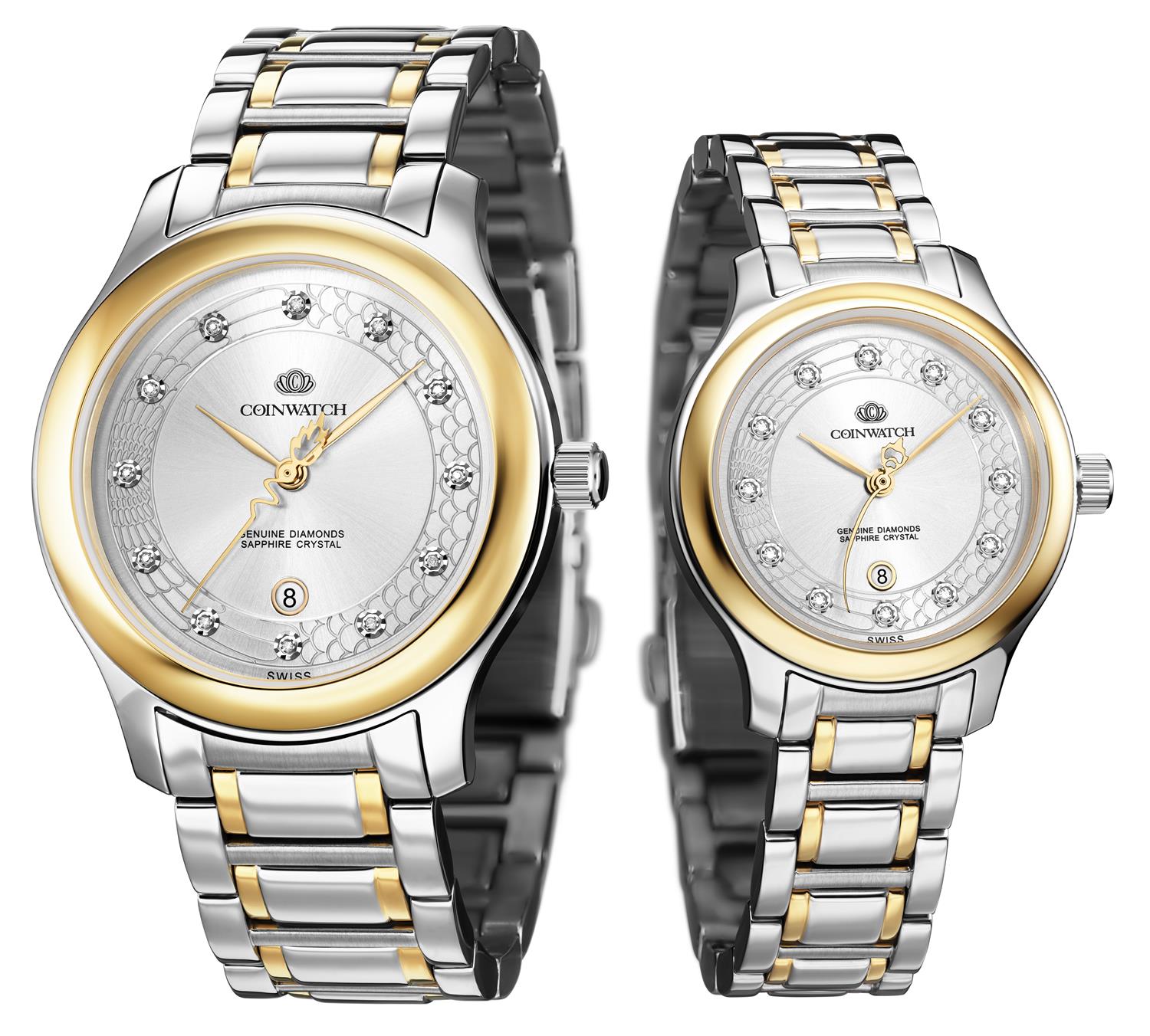 ساعت مچی مردانه کوین واچ coinwatch با طراحی کلاسیک بند و قاب دو رنگ طلایی استیل وصفحه نقره ای مزین با نگین برلیان و شیشه ضد خراش وقابلیت داشتن تقویم وموتورسوئیسی با انرژی باتری ومقاومت در برابر اب تا عمق 30متربه همراه دو سال گارانتی بین المللی