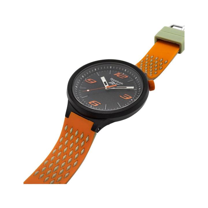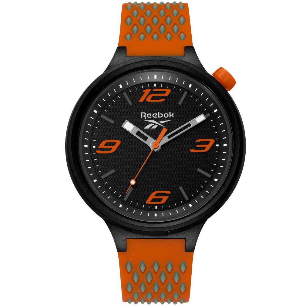 ساعت مچی مردانه/پسرانه ریباک REEBOK با طراحی اسپرت بند سیلیکونی نارنجی رنگ با قاب و صفحه گرد مشکی با موتور ژاپنی و انرژی باطری و مقاوم در برابر آب تا عمق 50 متر به همراه دو سال گارانتی بین المللی شرکت آرمان گالری
