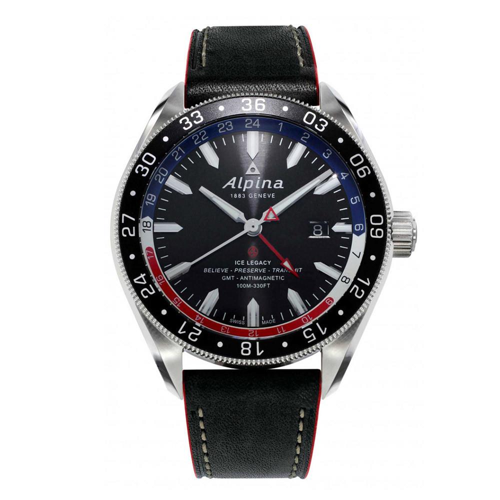 ساعت مچی مردانه Alpina با طراحی کلاسیک بند چرمی و قاب استیل مشکی وصفحه گرد مشکی با قابلیت داشتن تقویم,شب نما ,زمان دوم و موتوراتوماتیک سوئیسی با انرژی مکانیکی ومقاومت در برابر اب تا عمق 100 متربه همراه دو سال گارانتی بین المللی