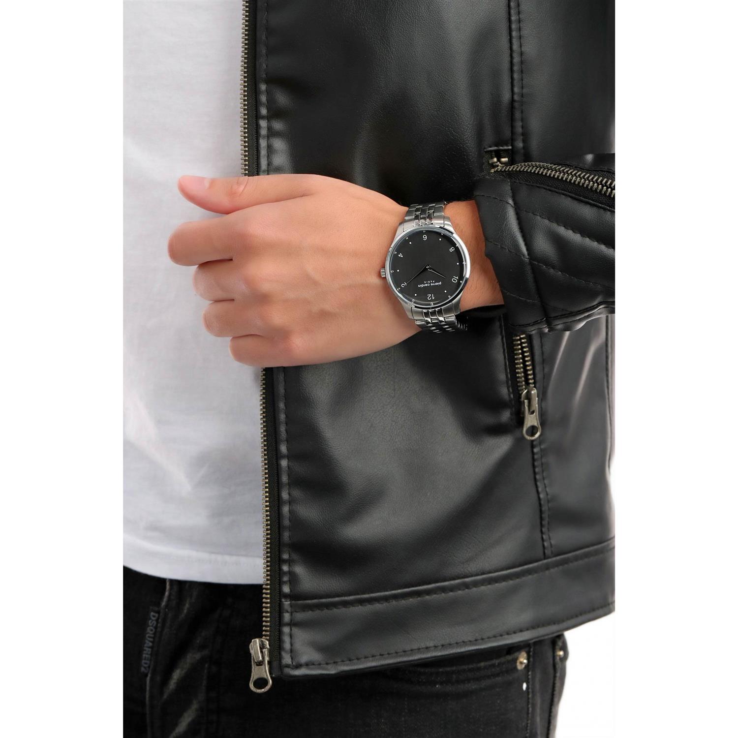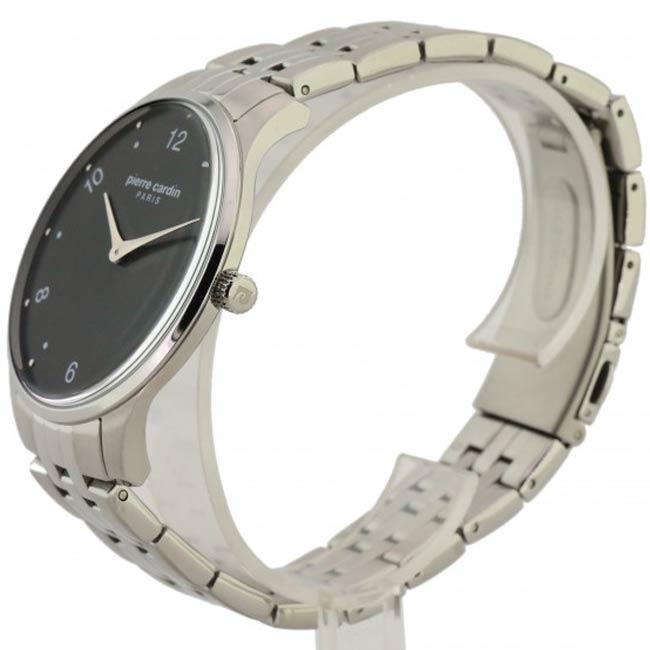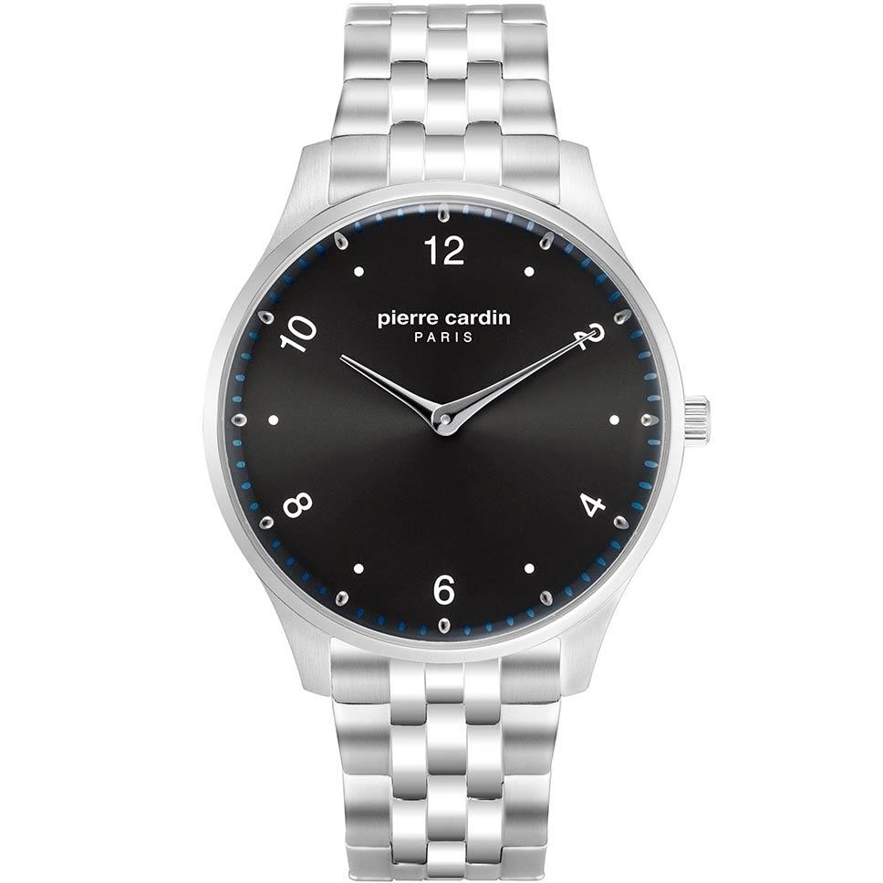 ساعت مچی مردانه پیرکاردین pierrecardin با طراحی روزانه بند فلزی و قاب گرد فلزی صفحه گرد مشکی با قابلیت داشتن تقویم , روز و شب , روزهای هفته و موتور ژاپنی با انرژی باتری و مقاومت در برابر اب تا عمق 30 متر به همراه دو سال گارانتی بین المللی