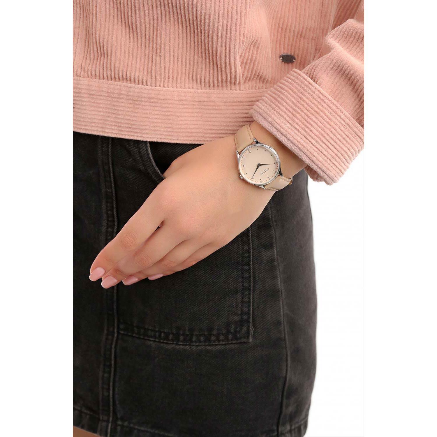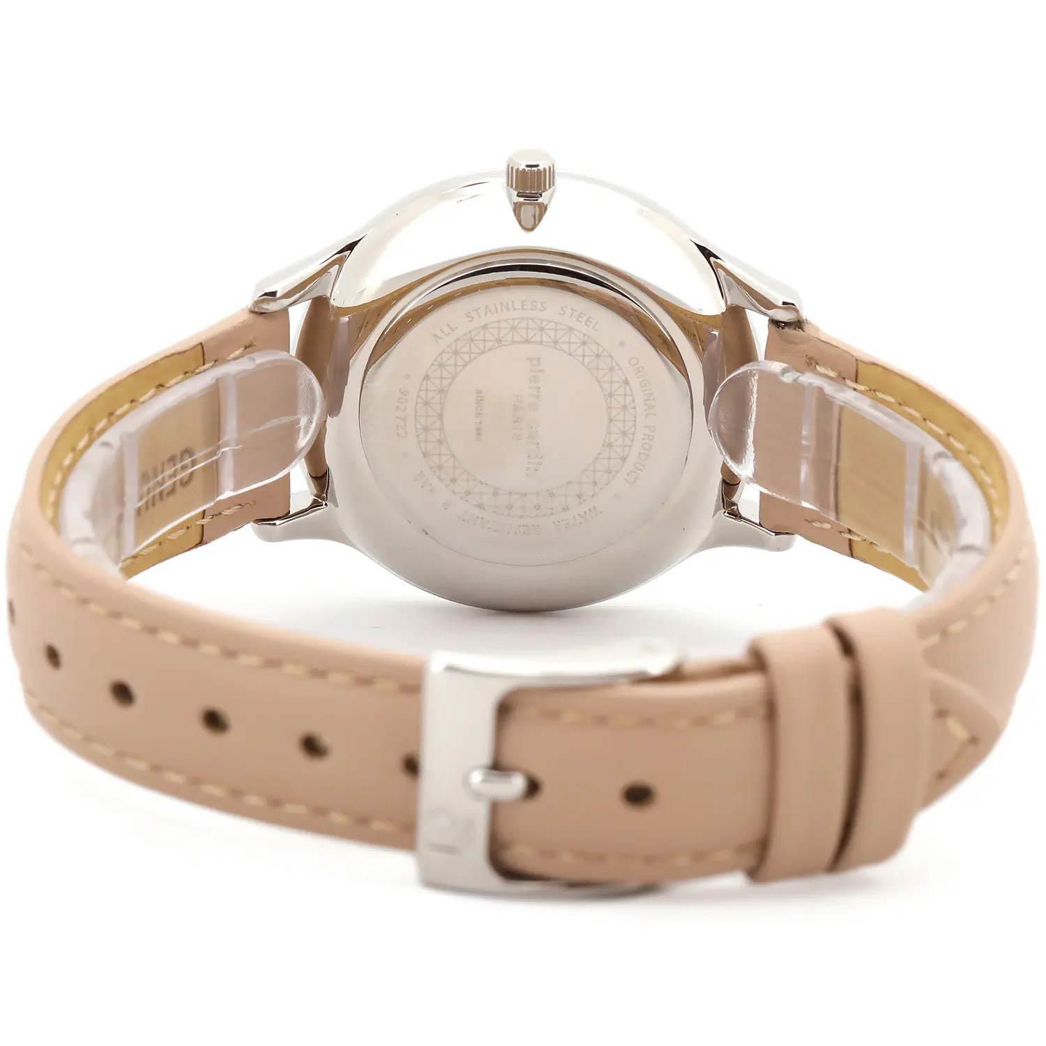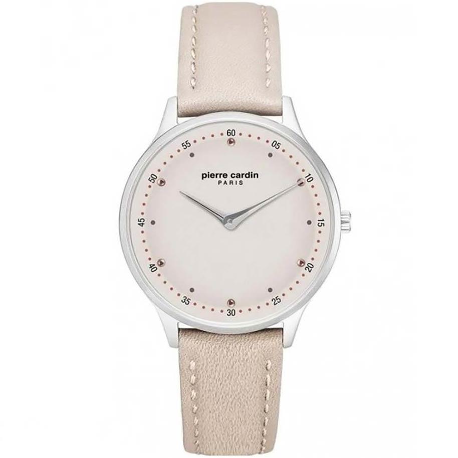 ساعت مچی زنانه پیرکاردین pierrecardin با طراحی روزانه بند چرمی کرمی و قاب گرد استیل و صفحه گرد کرم با موتور ژاپنی و انرژی باتری و مقاومت در برابر اب تا عمق 30 متر به همراه دو سال گارانتی بین المللی