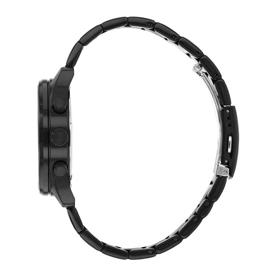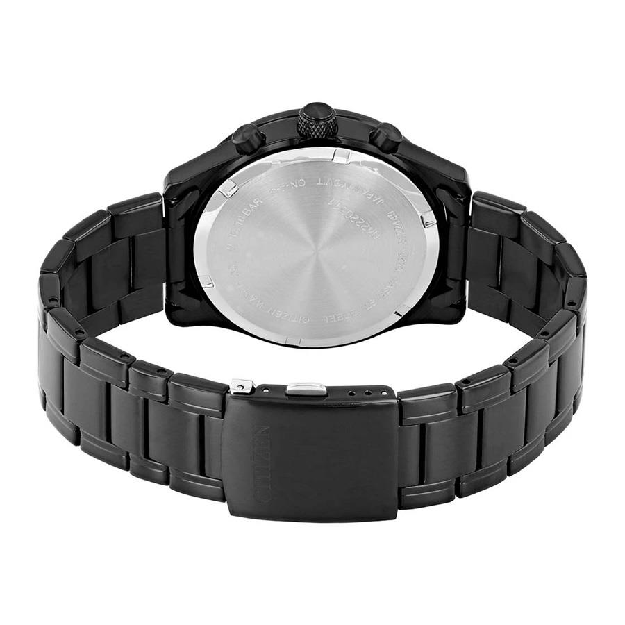 ساعت مچی مردانه سیتی زن CITIZEN با طراحی اسپرت بند فلزی مشکی با قاب گرد مشکی و صفحه مشکی و موتور ژاپنی با انرژی باتری و قابلیت داشتن  تقویم شب نما کرنوگراف زه تاچی متر روز و شب و مقاوم در برابر آب تا عمق 100 متر به همراه دو سال گارانتی بین المللی