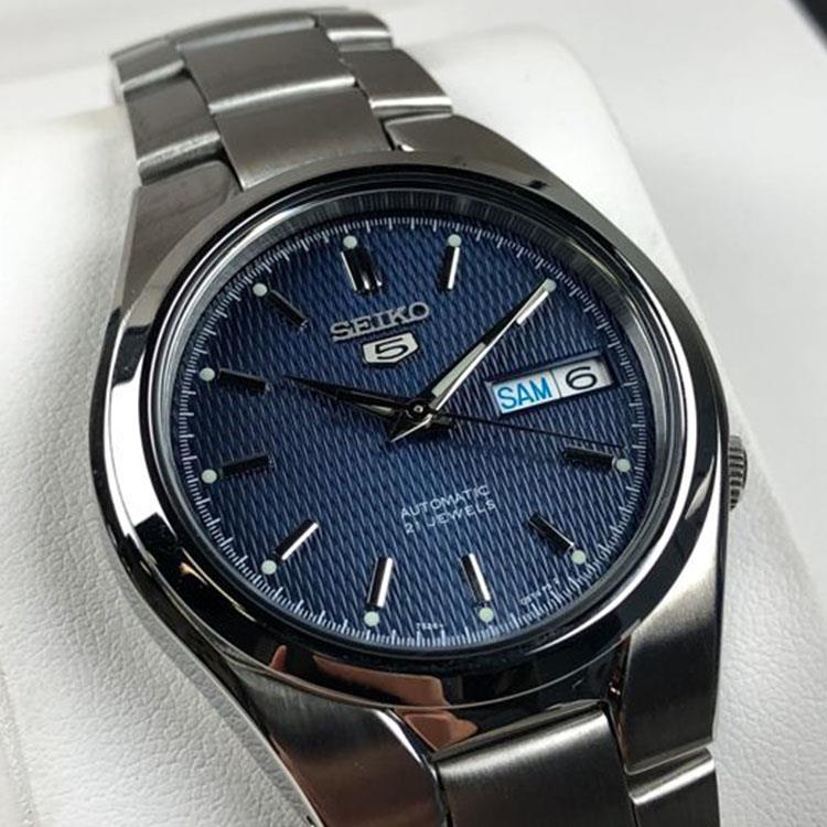 Seiko SNK603K1 از مجموعه محبوب Seiko 5 است؛ ساعتی مردانه با طراحی کلاسیک و قابل اعتماد که ترکیب قاب و بند تمام استیل، صفحه آبی با بافت خاص، و موتور خودکار را در کنار هم دارد. این مدل ظاهر شیک و متین دارد، با طراحی نسبتاً جمعوجوروایدهآل برای استفاده روزمره، کاری یا رسمی.