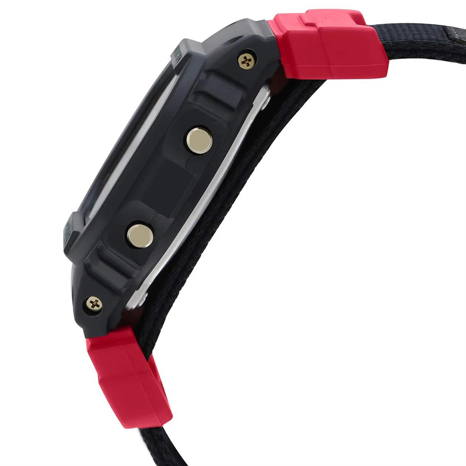 ساعت مچی مردانه کاسیو casio با طراحی اسپرت و بند برزنتی و قاب مربع و صفحه دو رنگ با نمایشگر دیجیتال و موتور ژاپنی با انرژی باتری و قابلیت کرنوگراف , روزهای هفته , تقویم, روز و شب , زنگ هشدار , نور پشت صفحه تایمر شمارش معکوس ضد ضربه و مقاومت در برابر اب تا عمق 200 متر به همراه دو سال گارانتی بین المللی