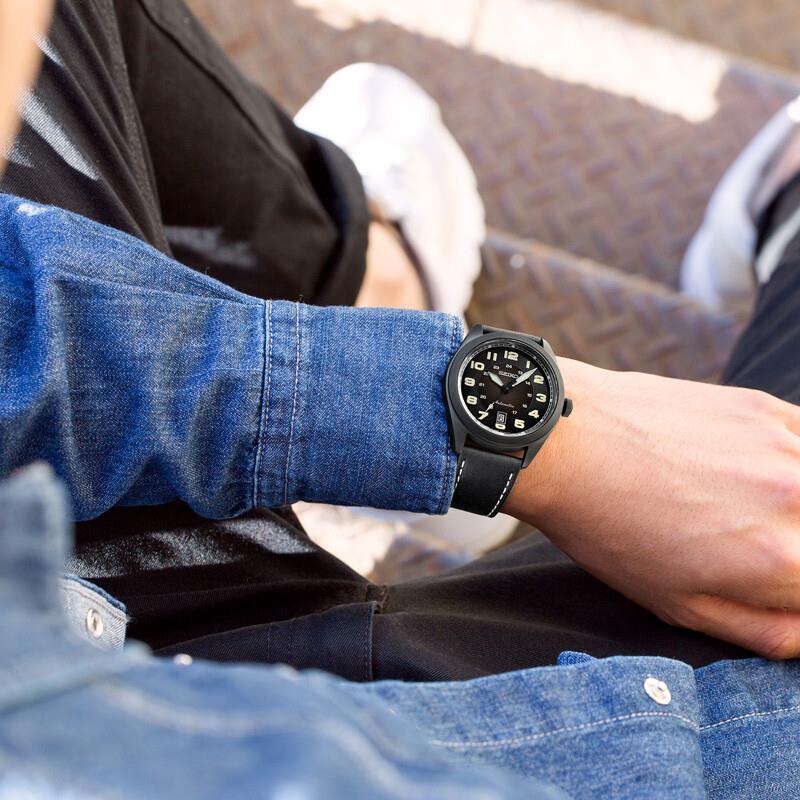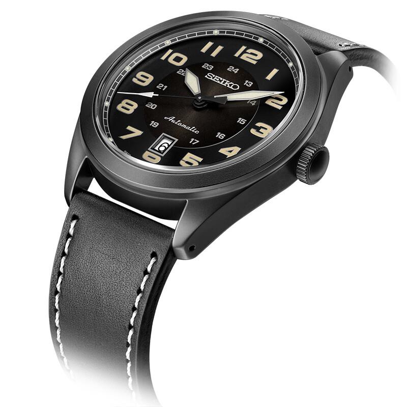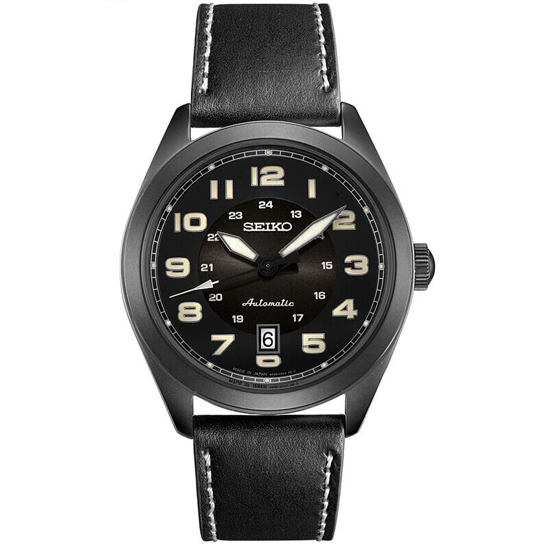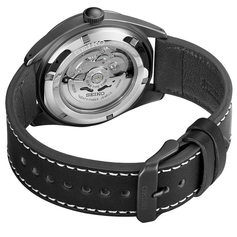 ساعت مچی مردانه سیکو seiko با طراحی اسپرت بند چرم و قاب گرد و صفحه مشکی با شیشه ضد خراش و قابلیت داشتن تقویم,شبنما و موتور اتوماتیک ژاپنی با انرژی مکانیکی و مقاومت در برابر اب تا عمق 100 متر به همراه دو سال گارانتی بین المللی