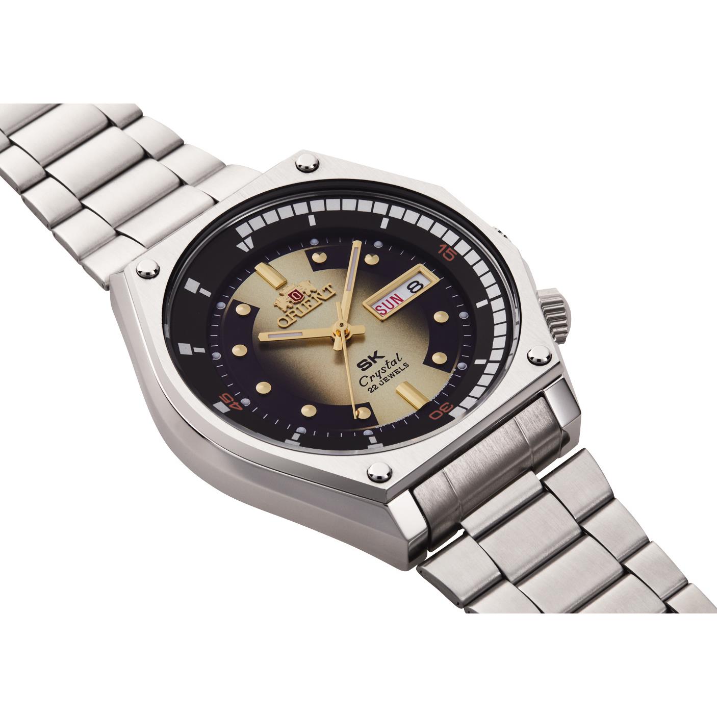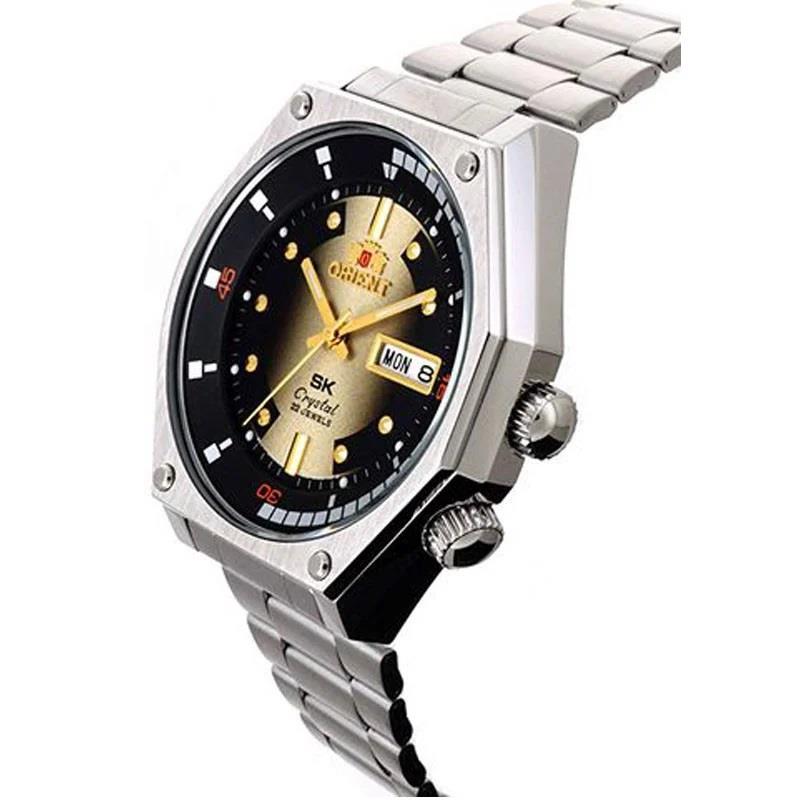 ساعت مچی مردانه اورینت orient با طراحی اسپرت بند استیل و قاب گرد و صفحه دو رنگ و قابلیت داشتن تقویم , روزهای هفته ,شب نما با موتور ژاپنی و انرژی باتری و مقاومت در برابر اب تا عمق 50 متر به همراه دو سال گارانتی بین المللی
