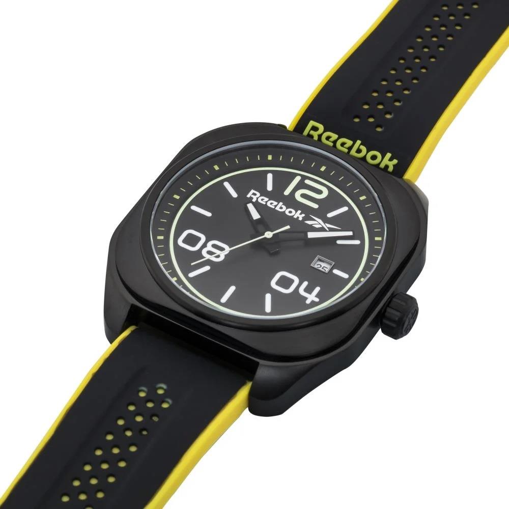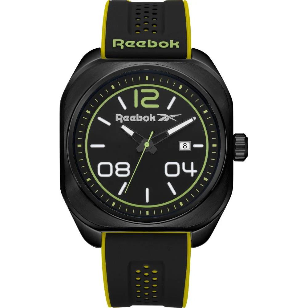ساعت مچی مردانه ریباک REEBOK با طراحی اسپرت بند سیلیکونی با قاب مربع شکل و صفحه مشکی و موتور ژاپنی با انرژی باطری و قابلیت داشتن تقویم, شب نما مقاوم در برابر آب تا عمق 100 متر به همراه دو سال گارانتی بین المللی