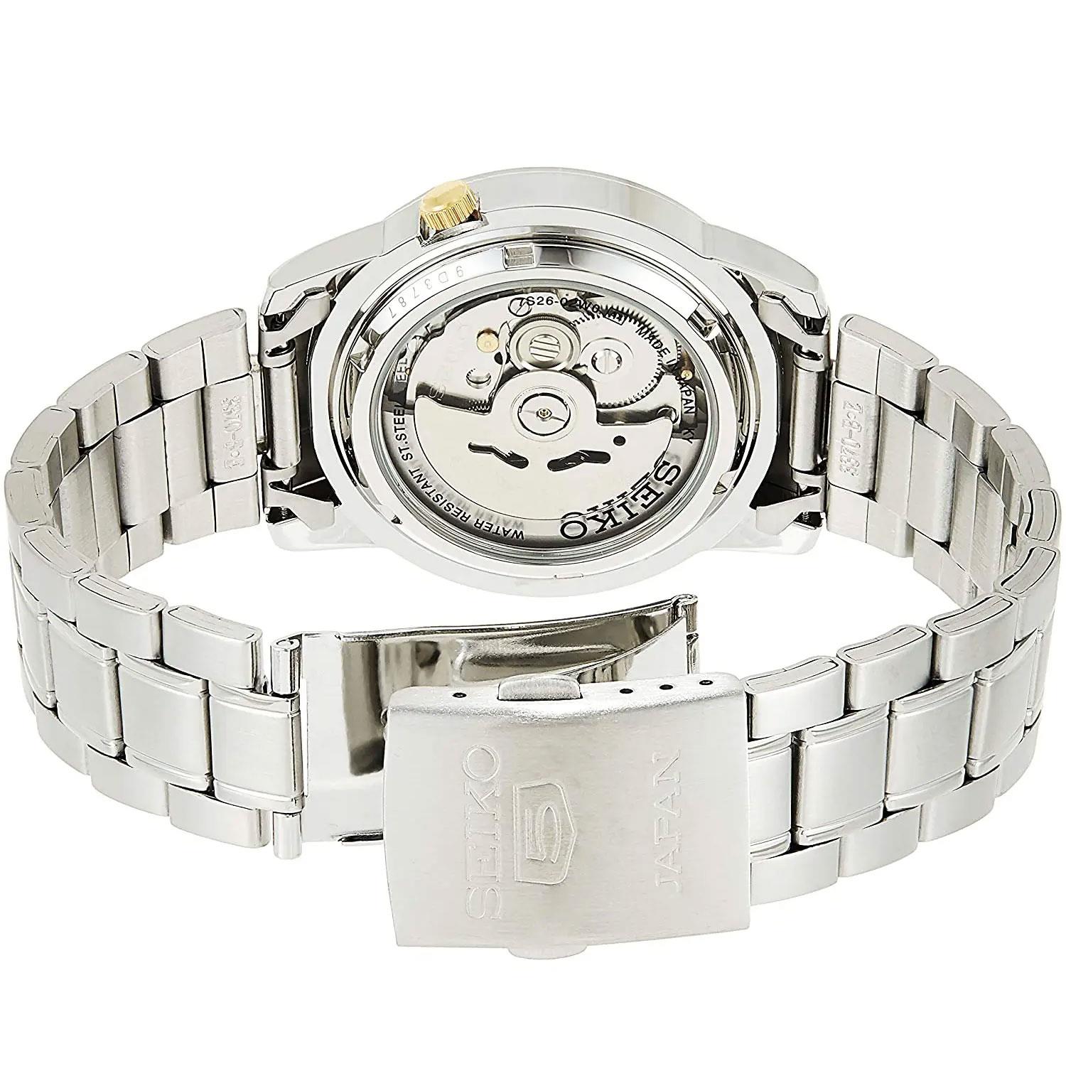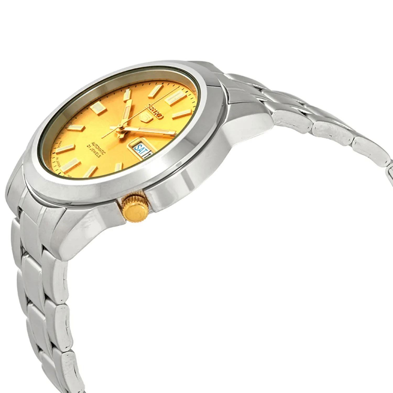 ساعت مچی مردانه سیکو SEIKO با طراحی روزانه بند استیل با قاب استیل و صفحه گرد زرد با موتور اتوماتیک ژاپنی با انرژی مکانیکی و قابلیت داشتن تقویم,شب نما روزهای هفته و مقاومت در برابر آب تا عمق 30 متر به همراه دو سال گارانتی بین المللی