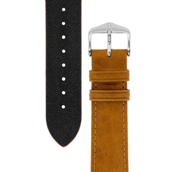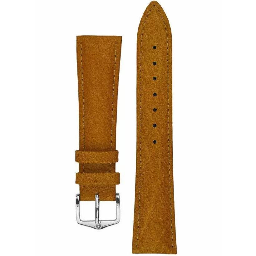 بند ساعت مچی هرش HIRSCH از جنس چرم با رنگ قهوه ای و طرح ساده و سگک نقره ای به همراه گارانتی اصالت کالا
