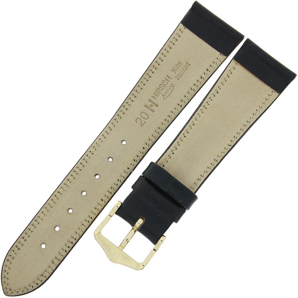 بند ساعت مچی هرش hirsch با طراحی ساده از جنس چرمی به رنگ مشکی و سگک طلایی به همراه گارانتی اصالت کالا