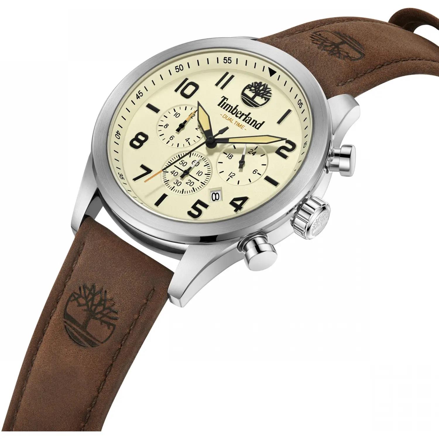 ساعت مچی مردانه تیمبرلند Timberland با طراحی روزانه بند چرمی و قاب استیل و صفحه گرد کرم با قابلیت تقویم , شب نما , کرنوگراف ,روز و شب و موتور ژاپنی با انرژی باتری و مقاومت در برابر آب تا عمق 50 متر به همراه دو سال گارانتی بین المللی