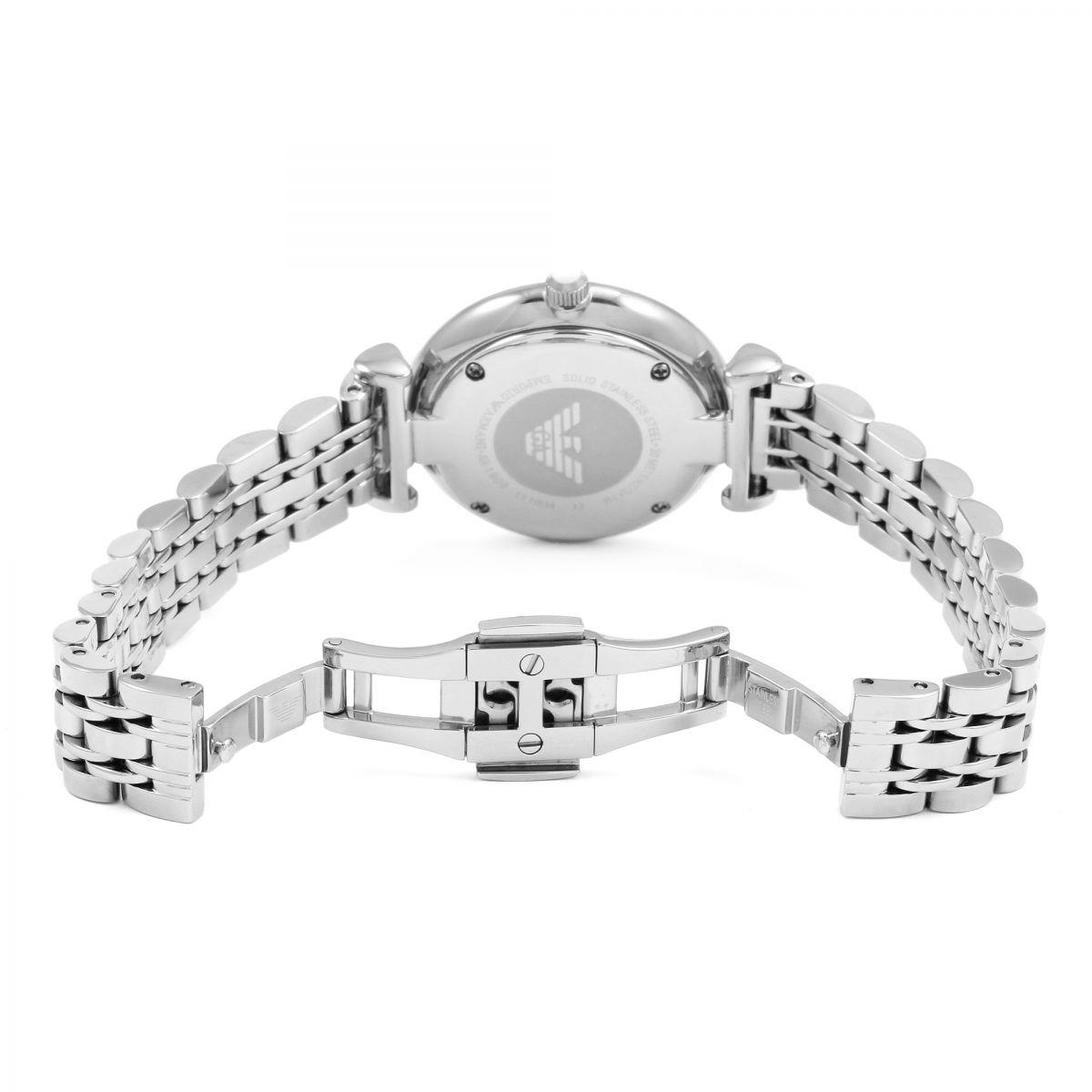 ساعت مچی زنانه/دخترانه امپوریو آرمانی EMPORIO ARMANI با طراحی کلاسیک بند فلزی و قاب گرد و صفحه سفید صدفی با دایره نگین به همراه دو سال گارانتی بین المللی شرکت آرمان گالری ساعت مچی زنانه امپوریوآرمانی | EMPORIOARMANI | AR1908