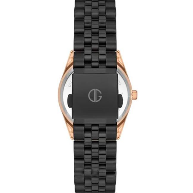ساعت مچی زنانه  دیوید گانر david guner با طراحی روزانه بند فلزی مشکی با قاب برنجی با روکش مسی و صفحه گرد مشکی با قابلیت روز و شب/ روزهای هفته/ شب نما/ تقویم و موتور ژاپنی با انرژی باتری و مقاوم در برابر آب تا عمق 30 متر به همراه گارانتی بین المللی