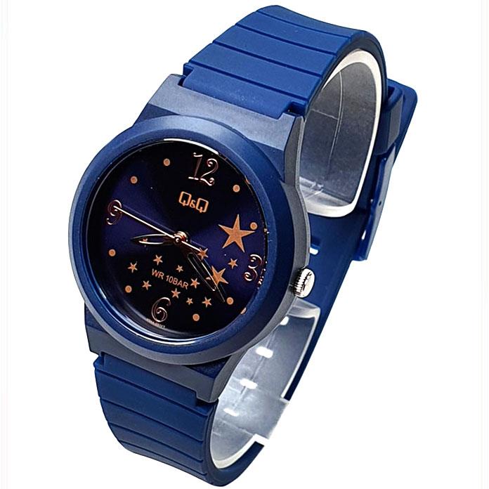 ساعت مچی دخترانه کیو اند کیو QQ با طراحی روزانه بند سیلیکونی سرمه ای و قاب سرمه ای و صفحه گرد طرحدار سرمه ای و موتور ژاپنی با انرژی باطری و مقاوم در برابر آب تا عمق 100 متر به همراه یک سال گارانتی شرکتی