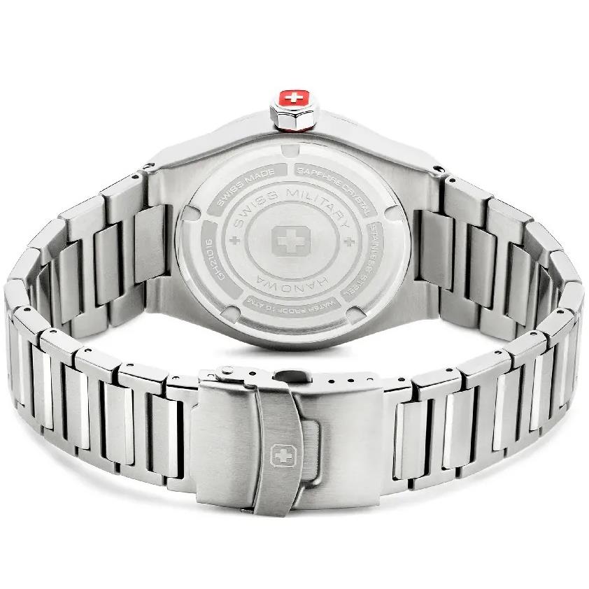 ساعت مچی مردانه سوییس میلیتاریswiss military با طراحی روزانه بند استیل با قاب فلزی استیل و صفحه گرد مشکی با شیشه ضد خراش و قابلیت داشتن تقویم / شب نما و موتور سوییسی با انرژی باتری و مقاوم در برابر آب تا عمق 100 متر به همراه دو سال گارانتی بین المللی