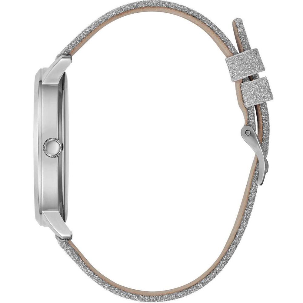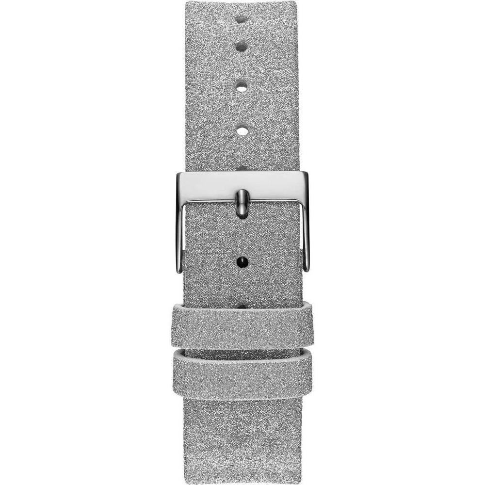 ساعت مچی زنانه گس GUESS با طراحی روزانه بند چرمی نقره ای و قاب گرد استیل و صفحه طرح دار چند رنگ و موتور ژاپنی و انرژی باتری مقاومت در برابر آب تا عمق 30 متر به همراه دو سال گارانتی بین المللی