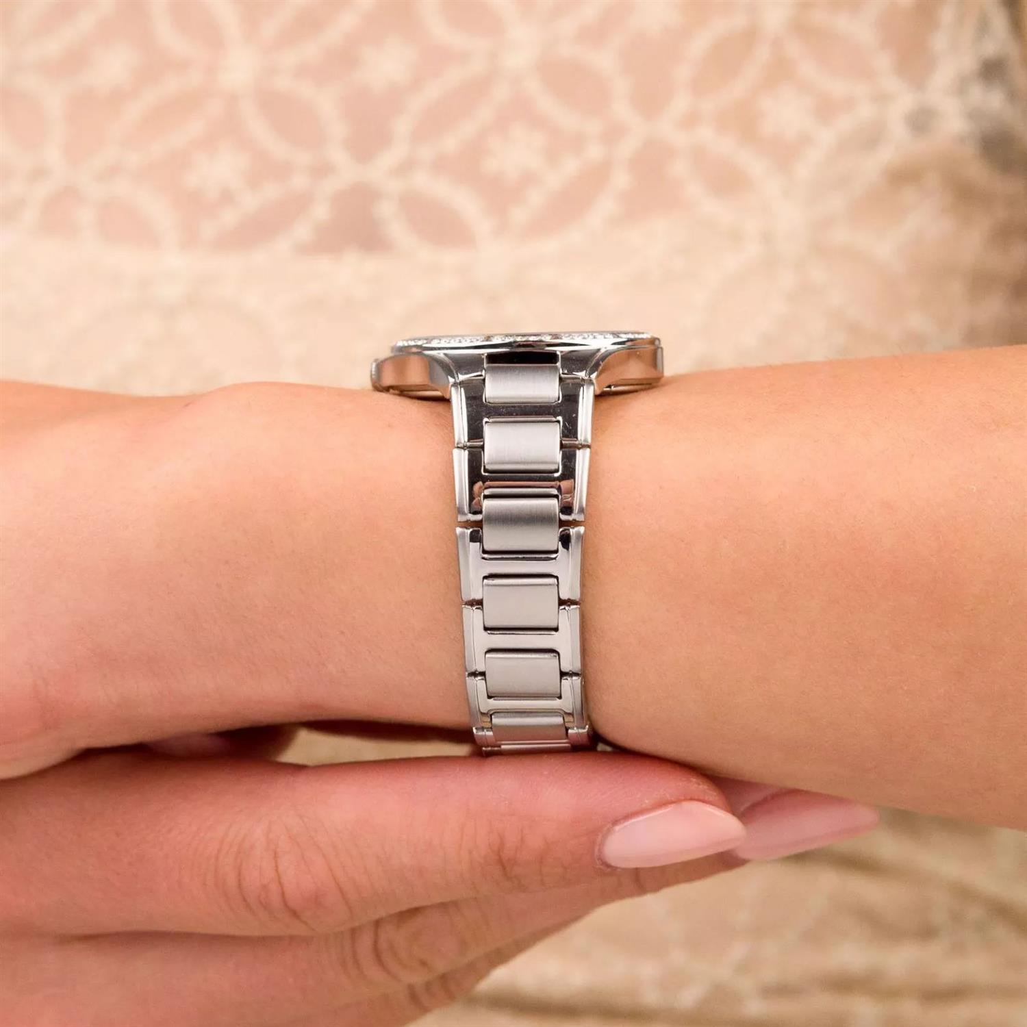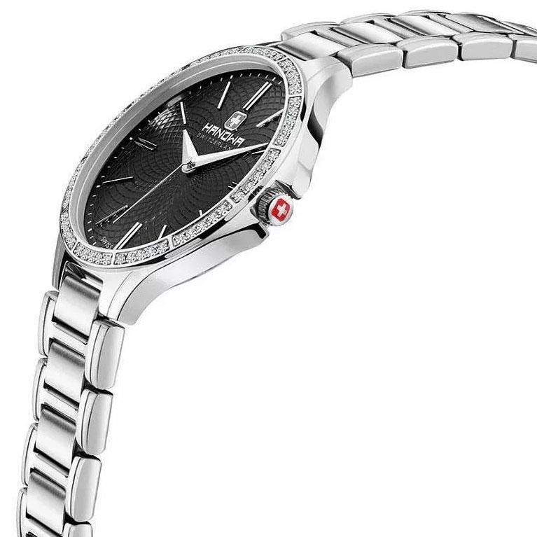 ساعت مچی زنانه هانوا HANOWA با طراحی کلاسیک بند استیل با قاب دور نگین استیل و صفحه گرد مشکی و موتور سوییسی با انرژی باتری و مقاوم در برابر آب تا عمق 50 متر به همراه دو سال گارانتی بین المللی