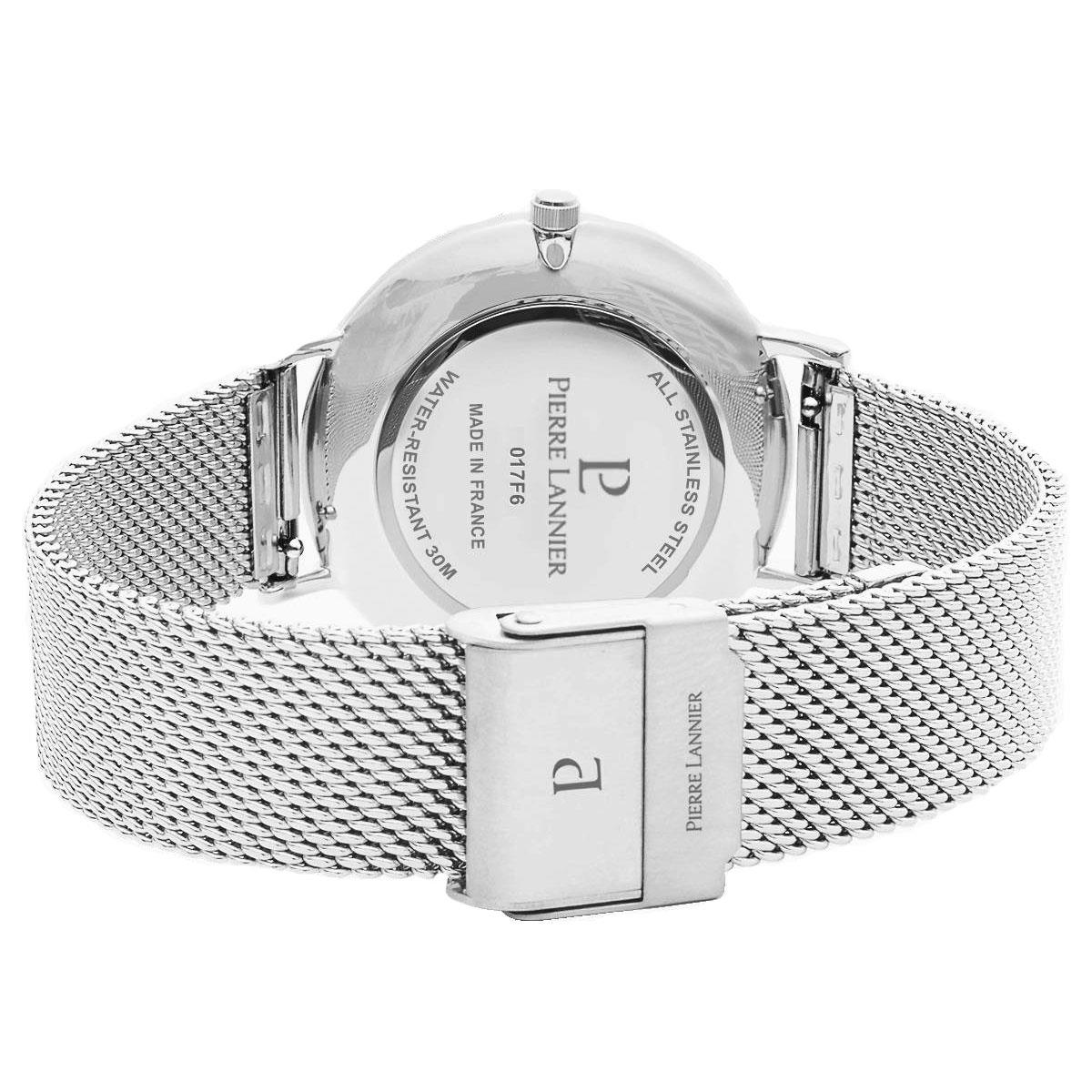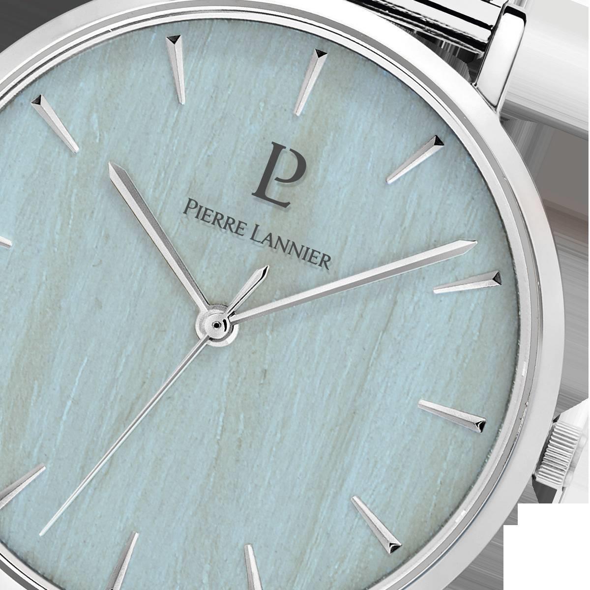 ساعت مچی زنانه پیرلنیر pierre lannier با طراحی روزانه بند حصیر بافت استیل و قاب گرد استیل و صفحه گرد آبی و موتور ژاپنی با انرژی باتری و مقاوم در برابر آب تا عمق 30 متر به همراه گارانتی بین المللی